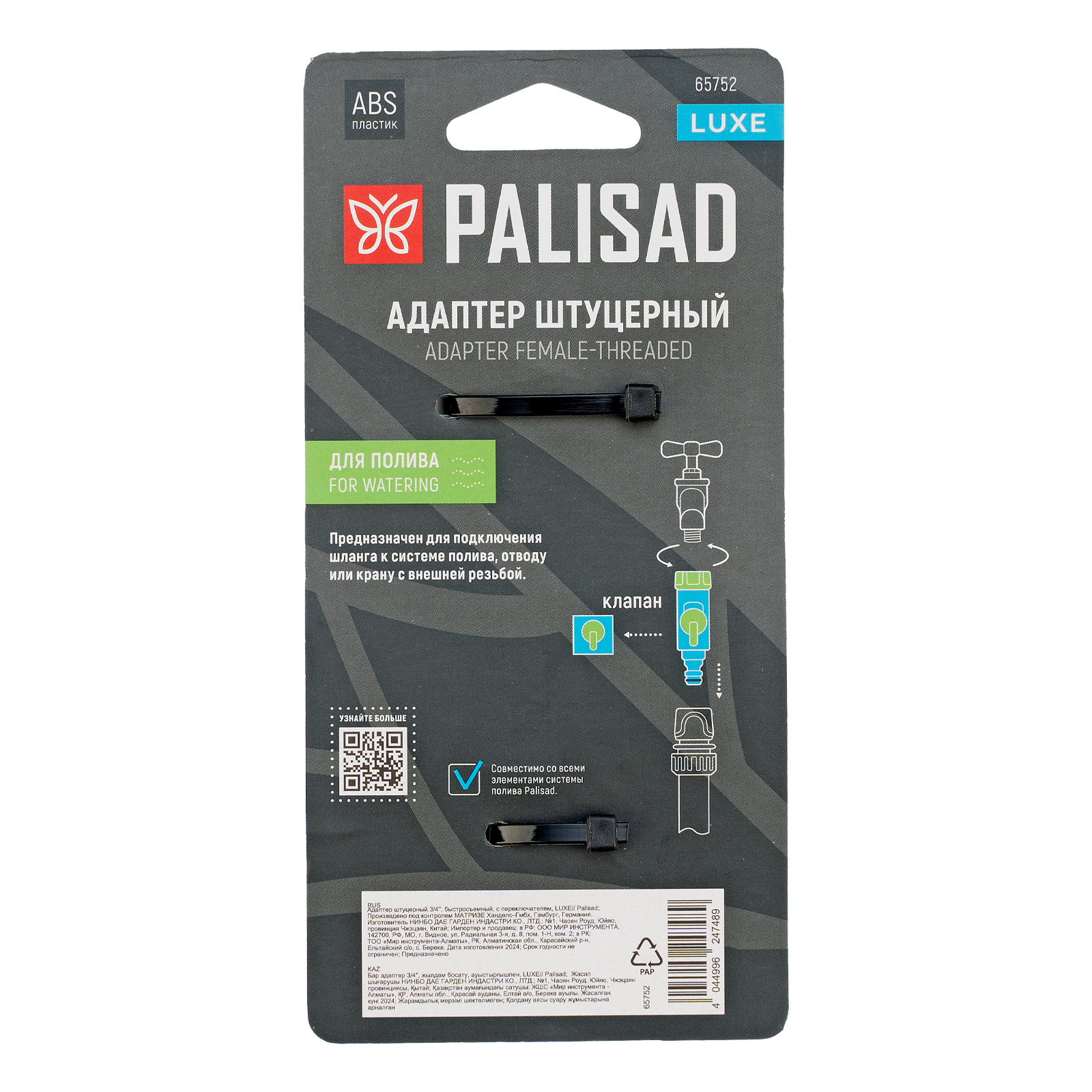 Адаптер штуцерный 3/4'', быстросъемный, с переключателем, LUXE Palisad
