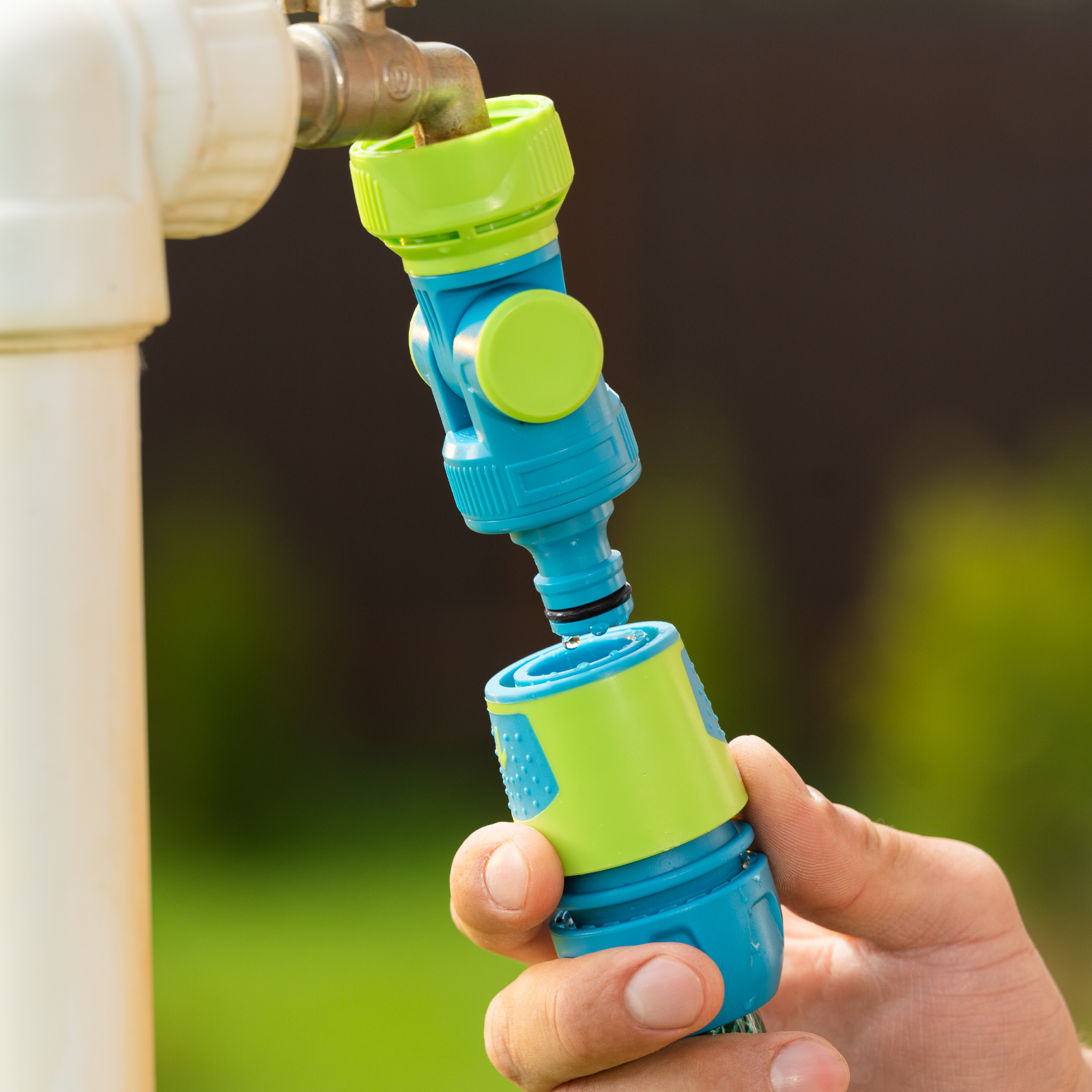 - Изменение направления полива без риска повреждения шланга — шарнирный механизм вращается на 180°.