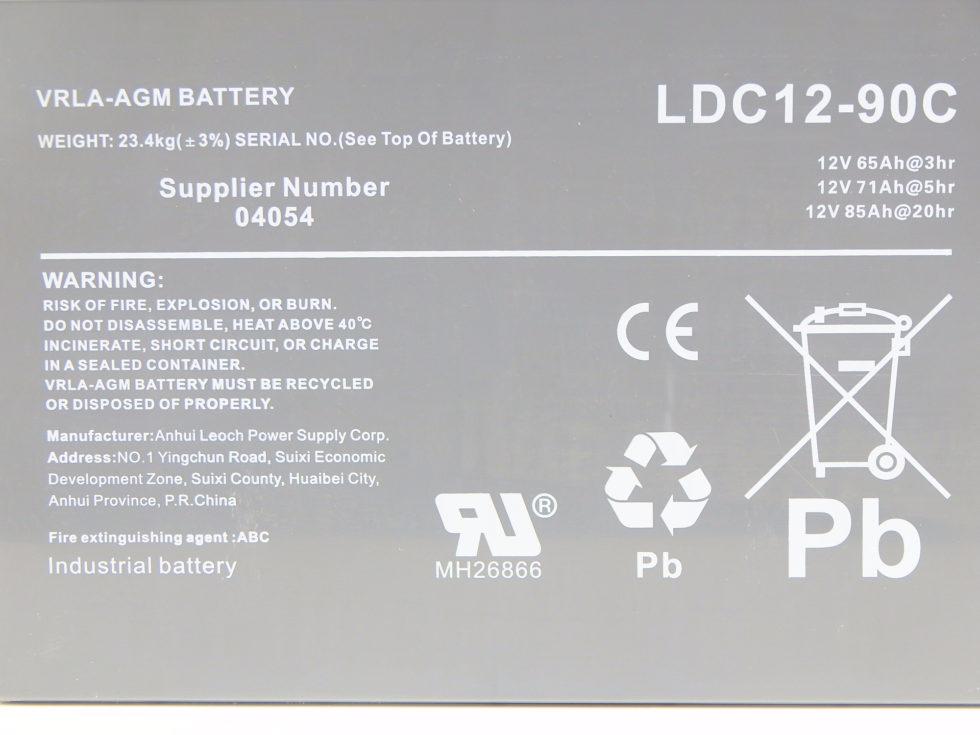 Аккумулятор свинцово-кислотный герм. (GEL) 12В/85Ач (20Hr) 260х162х215 для WS15H/WS15H SC PRO