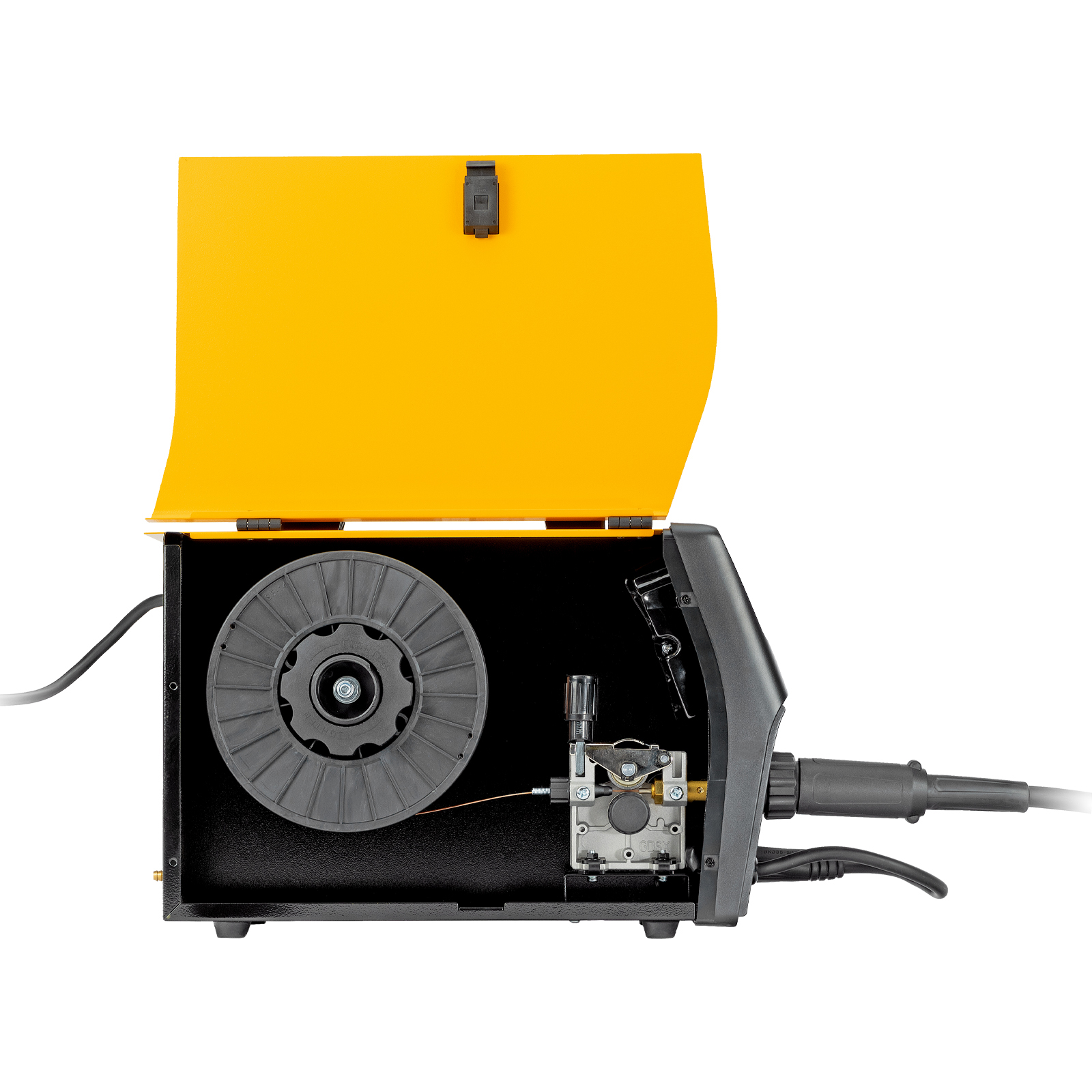 Инверторный аппарат полуавтоматической сварки Denzel IMIG-185SDR 94363 работает с максимальным сварочным током 180 A и совместим с катушками массой от 1 до 5 кг, продолжительность включения составляет 60%. Аппарат разработан с использованием передовой инверторной технологии IGBT, что обеспечивает стабильный сварочный ток на выходе и высокий КПД при низком энергопотреблении. Возможна работа при нестабильном напряжении в сети. Синергетическое управление упрощает подбор параметров сварки в зависимости от конкретной задачи: аппарат предлагает оптимальные значения напряжения, скорости подачи проволоки и т.д.