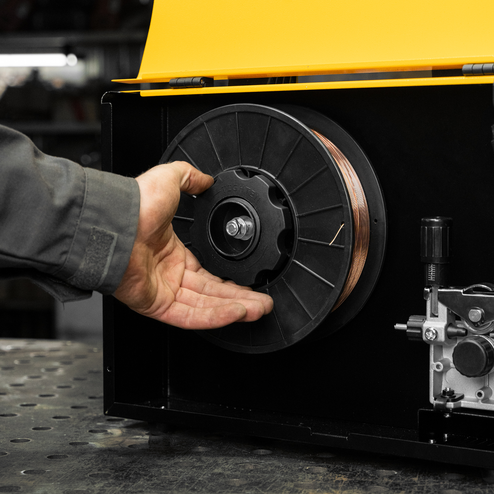 - Работа на удалении от аппарата и в труднодоступных местах — предусмотрена возможность использования горелки со встроенной катушкой сварочной проволоки (Spool gun).