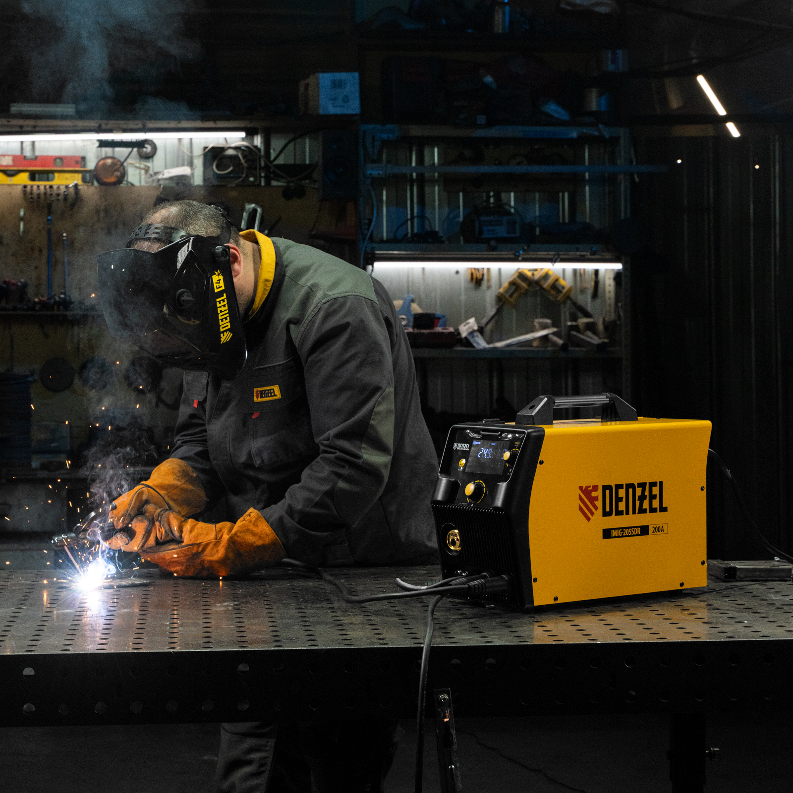 Аппарат инвертор. полуавтомат. cварки IMIG-205SDR, 200 А, ПВ 60%, катушка 5 кг Denzel