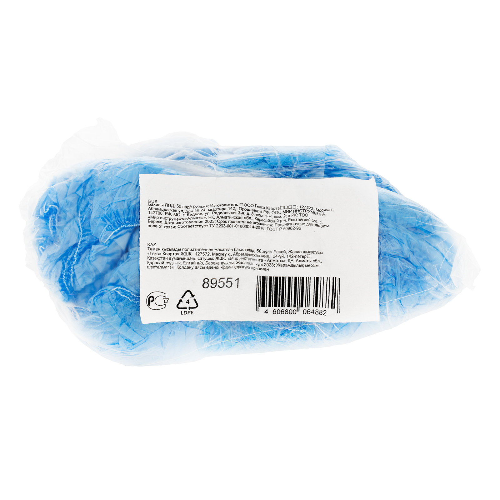 Бахилы ПНД 89551 предназначены для применения в медицинских учреждениях, закрытых помещениях и общественных местах. Позволяют поддерживать чистоту и соблюдать санитарные нормы без использования сменной обуви.