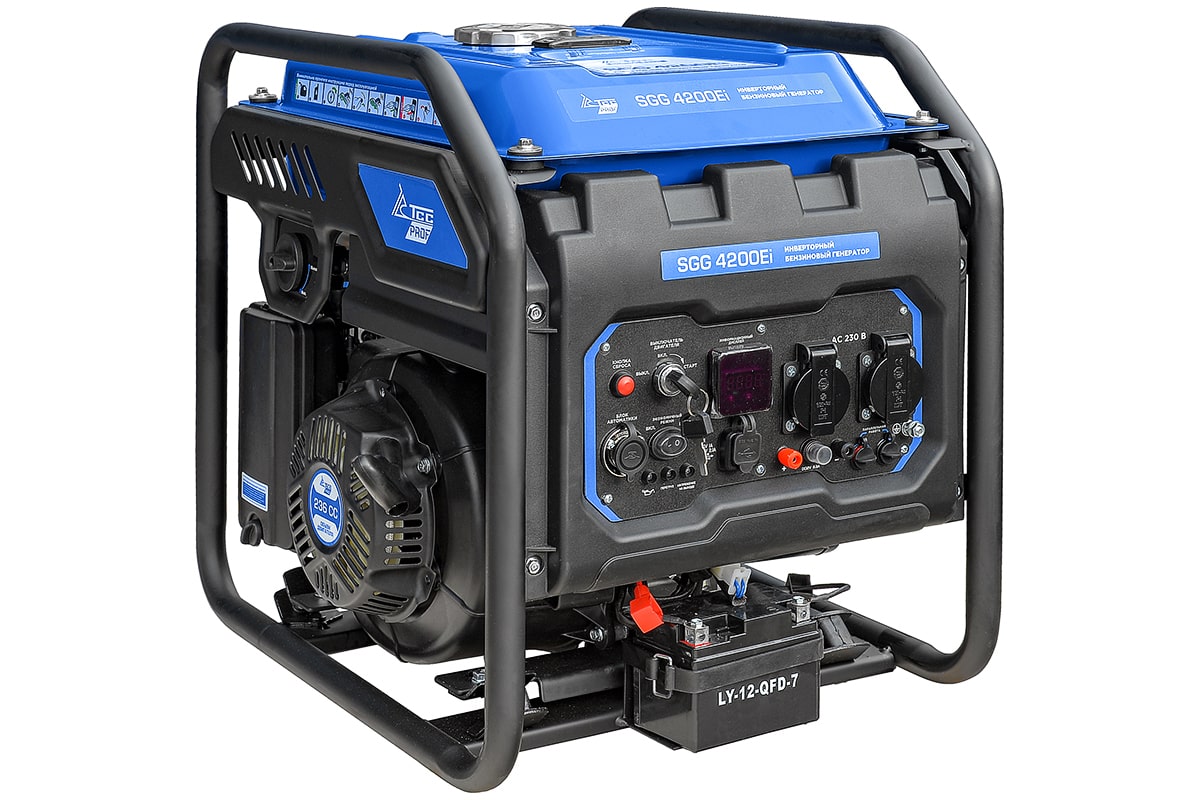 <div class="marketing-card"> <div class="block--left"> <div class="description"> <div class="title"> Мощность и области применения </div> <span class="text"> Бензогенератор инверторный SGG 4200Ei с электростартом и разъемом для подключения блока автоматики, вырабатывает электричество с высокой точностью частоты и напряжения. Предназначен для подключения к нему потребителей общей номинальной мощностью до 4,2 кВт. Позволяет подключать к генератору как обычных потребителей, так и точное электронное оборудование, например, ноутбуки, LCD-телевизоры или смартфон. </span> </div> <div class="image"> <img alt="" src="/upload/pic/benzogenerator/tss-sgg-4200ei-060048/1.png"> </div> </div> <div class="block--right"> <div class="image"> <img alt="" src="/upload/pic/benzogenerator/tss-sgg-4200ei-060048/2.png"> </div> <div class="description"> <div class="title"> Надежность работы </div> <span class="text"> Благодаря использованию В этой модели инверторного преобразователя, на выходе получается стабильный ток, без каких-либо скачков, генератор способен регулировать работу двигателя в зависимости от нагрузки: к примеру, если нагрузка составляет половину от выходной мощности, то и мощность двигателя снижается вдвое; это дает значительную экономию топлива. Инверторные модели получаются более легкими и компактными, чем традиционные генераторы. </span> </div> </div> <div class="block--advantages"> <div class="text"> Благодаря использованию В этой модели инверторного преобразователя, на выходе получается стабильный ток, без каких-либо скачков, генератор способен регулировать работу двигателя в зависимости от нагрузки: к примеру, если нагрузка составляет половину от выходной мощности, то и мощность двигателя снижается вдвое; это дает значительную экономию топлива, инверторные модели получаются более легкими и компактными, чем традиционные генераторы. Благодаря двигателю, специально разработанному под инверторный генератор и особенной конструкции корпуса, удалось значительно понизить уровень шума. Режим ECO экономит топливо и увеличивает ресурс двигателя. Выход 12 вольт позволяет подзарядить автомобильный аккумулятор в экстренном случае. Инверторный генератор считается оптимальным выбором для нагрузки, чувствительной к качеству тока — такой, как аудиотехника или телевизор. <br><br> </div> <div class="title"> Ключевые особенности </div> <div class="text"> <ul> <li>Система перевода двигателя в экономичный режим</li> <li>Цифровой дисплей позволяет контролировать выходное напряжение, частоту переменного тока, количество отработанных моточасов </li> <li>Индикаторы на панели паказывают параметры напряжения, превышение мощности генератора, низкий уровень масла</li> <li>Медная обмотка альтернатора</li> <li>Защита от короткого замыкания, перегрузки и низкого уровня масла</li> <li>Антивибрационные резиновые ножки</li> <li>Экономичный расход топлива</li> <li>Стабильный ток для точных приборов</li> <li>Выход на 12В для зарядки аккумулятора</li> <li>Удобный запуск с помошью ключа электростарта<li> <li>АКБ в комплектации</li> <li>Разъем для АВР, Можно комплектовать Блоком АВР-С 9000/230, дополнительная опция - арт.190047</li> <li>Разъем USB 5 В позволяет заряжать мобильные устройства</li> <li>Разъем параллельной работы позволяет суммарно увеличить выходную электрическую мощность, подключив 2 электростанции вместе с помощью дополнительного устройства - УПРИГ</li> </ul> </div> <div class="content"> <ul class="list"> <li class="item"> <strong class="header"> Альтернатор с медной обмоткой </strong> <span class="text"> Медная обмотка обладает повышенным ресурсом работы </span> </li> <li class="item"> <strong class="header"> Выход 12 воль