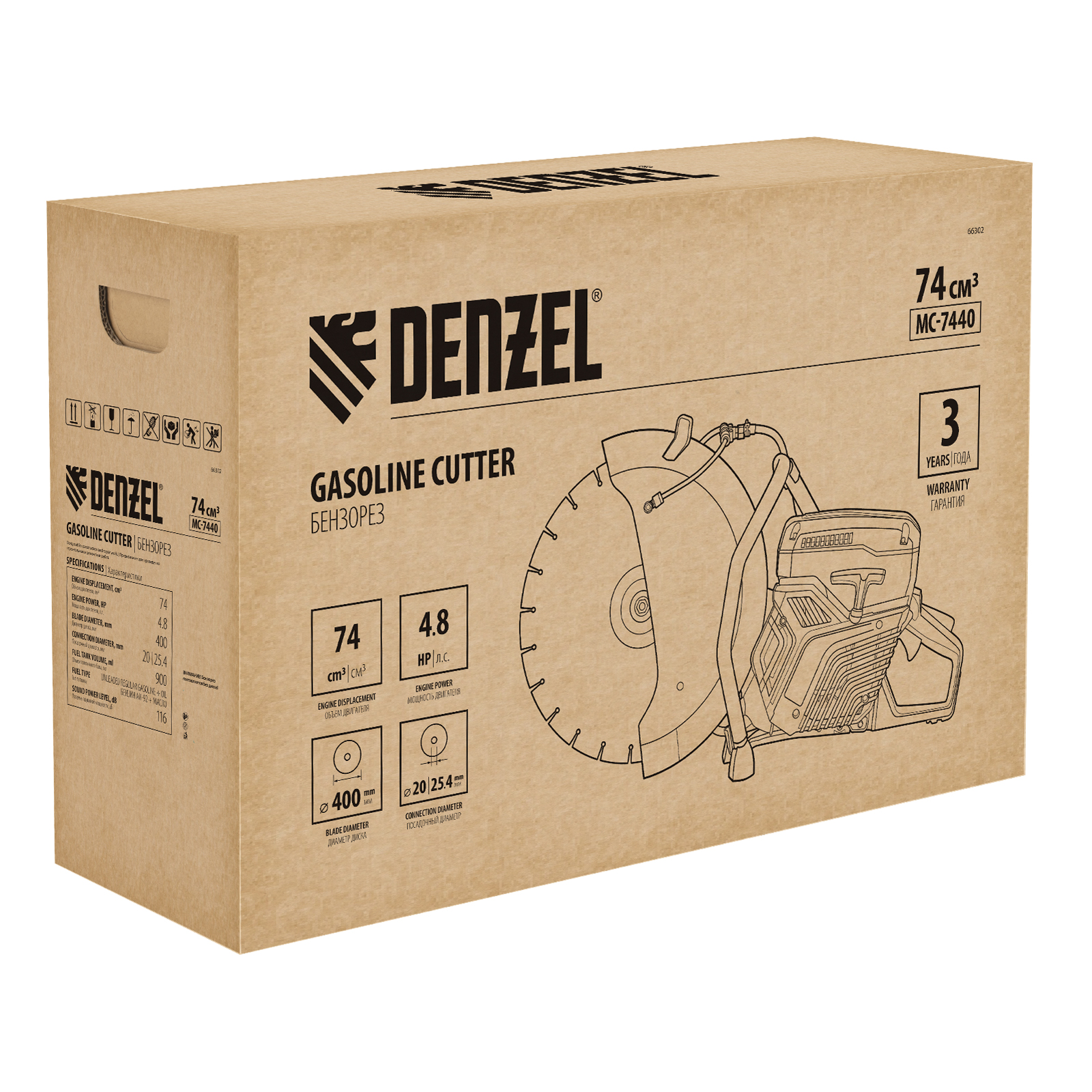 Бензорез Denzel MC-7440 66302 предназначен для работы с бетоном, асфальтом, чугуном, сталью и другими твердыми материалами. Оптимален для проведения демонтажных работ на строительной площадке, также может применяться во время спасательных операций. Для работы используются алмазные, абразивные и зубчатые диски диаметром 400 мм. Эффективное решение поставленных задач обеспечивает двигатель объемом 74 см3 и мощностью 4,8 л.с., для удобного выбора режущего диска имеется два посадочных диаметра: 20 и 25,4 мм.
