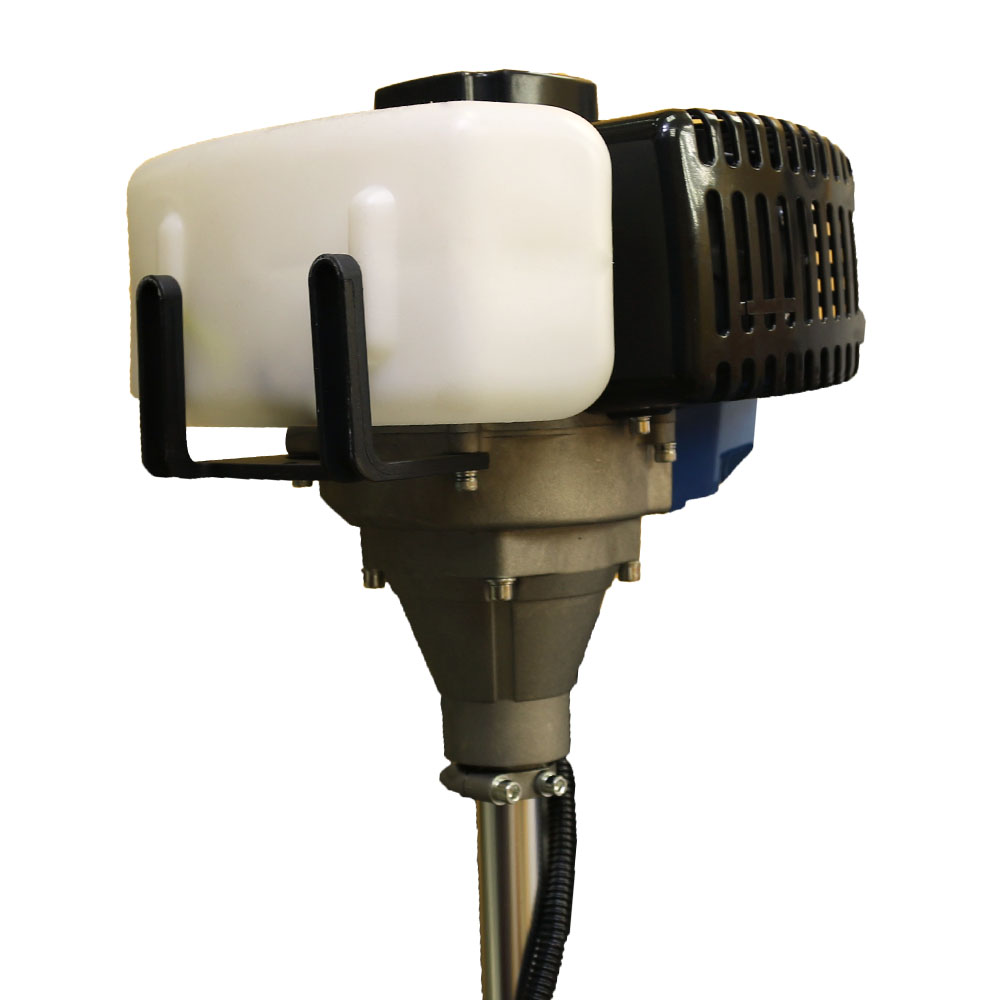 Двухтактный бензиновый двигатель объёмом 43 куб.см работает на смеси 92 безина и масла для 2Т двигателей (!)