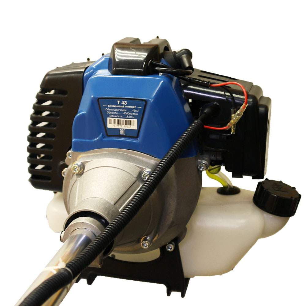 двигатель одноцилиндровый, 2Т (двухтактный), объём 43 куб.см, мощность 1,84 кВт / 2,5 л.с., тип запуска: ручной STD