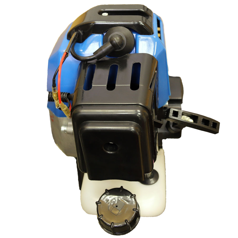 Двухтактный бензиновый двигатель объёмом 52 куб.см работает на смеси 92 безина и масла для 2Т двигателей (!)
