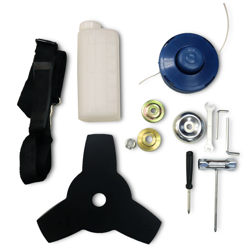 металлический нож позволяет скашивать жесткую траву и мелкий кустарник