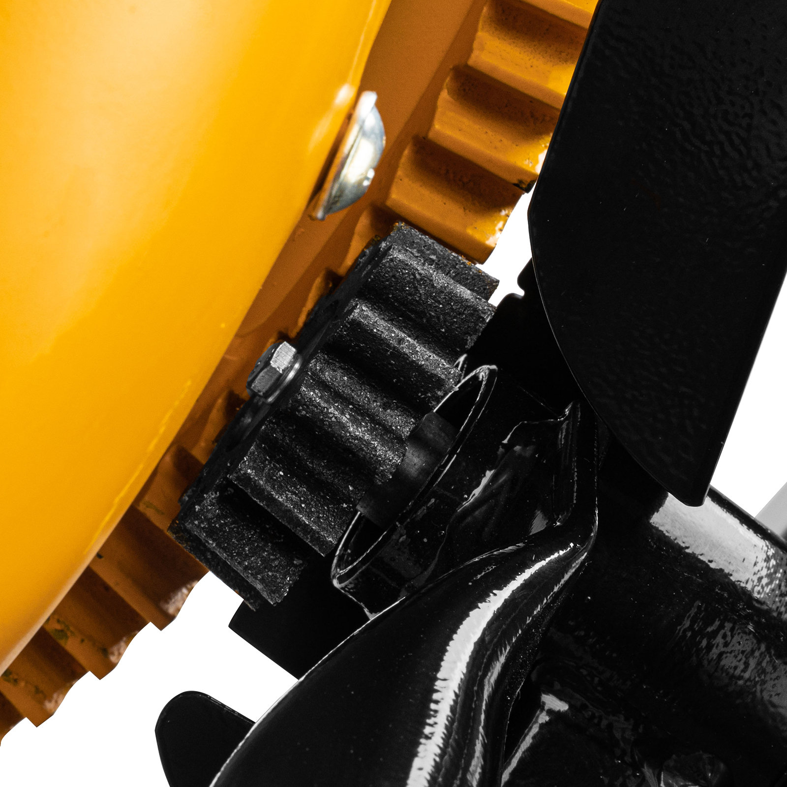 - Безопасная эксплуатация — ведущая шестерня закрыта широким защитным кожухом, предотвращающим затягивание посторонних предметов в привод.