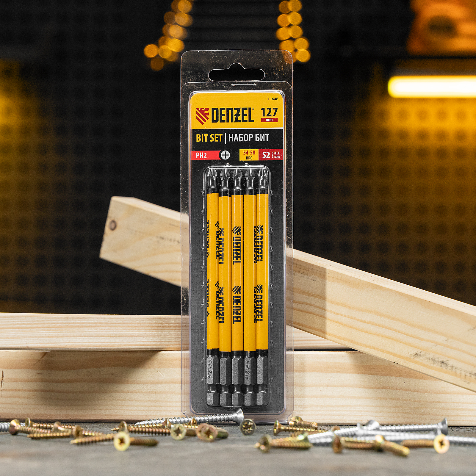 Бита PH2х127, сталь S2, цилиндр., 5шт. Е 6,3 Denzel