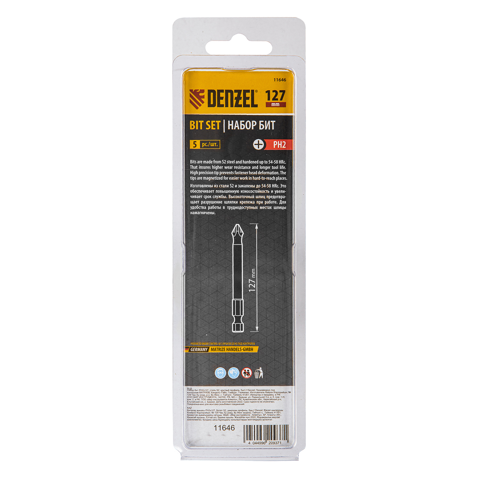 Бита PH2х127, сталь S2, цилиндр., 5шт. Е 6,3 Denzel |