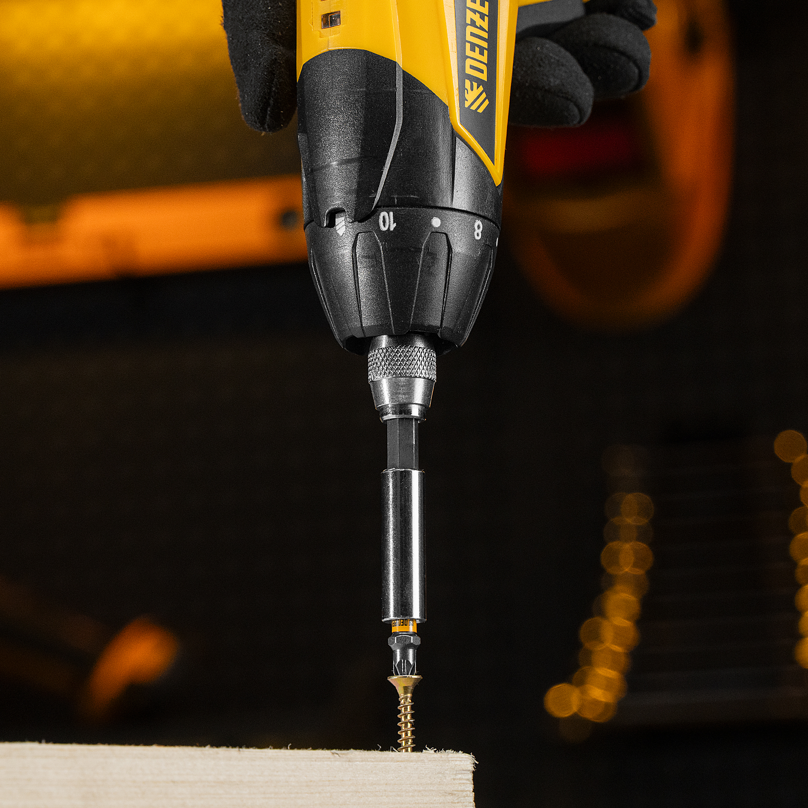 - Защита от подделок — цветное кольцо с логотипом ТМ Denzel на каждой бите подтверждает оригинальность товара.