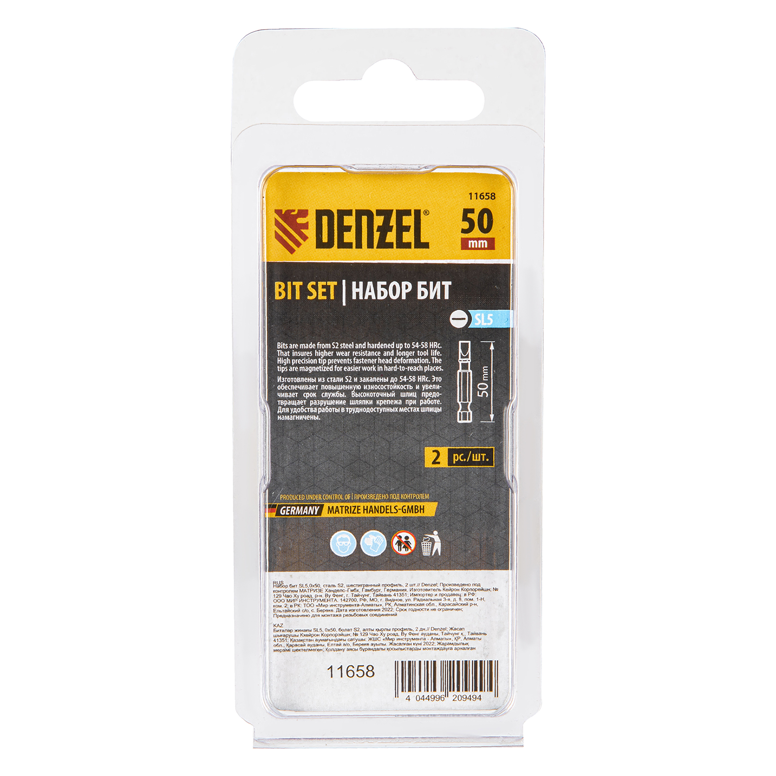 - Защита от подделок — цветное кольцо с логотипом ТМ Denzel на каждой бите подтверждает оригинальность товара.
