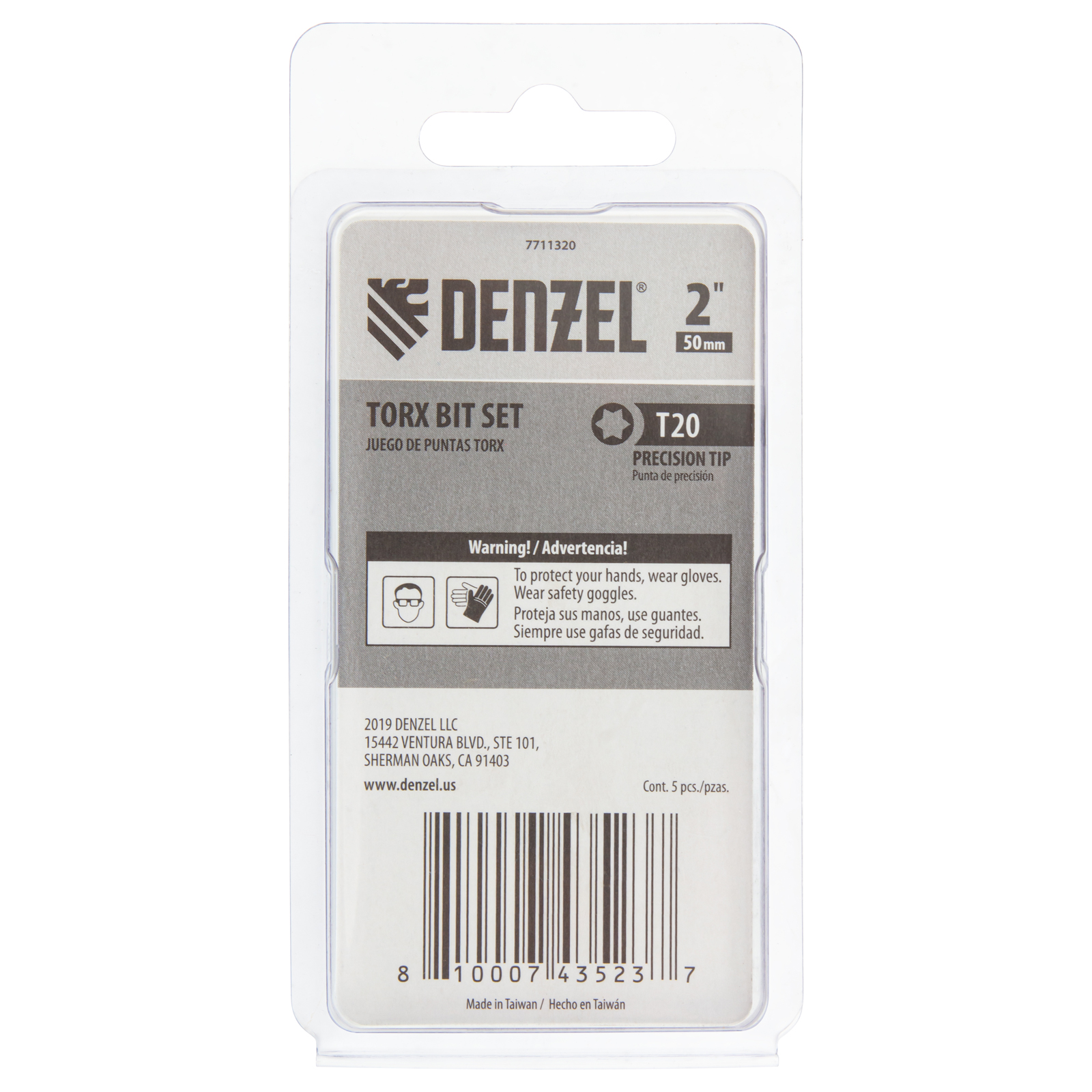 Набор бит Denzel 7711320 типоразмера T20 x 50, 5 шт. в упаковке, подходит для использования с шуруповертами, электрическими отвертками и отвертками-держателями. Используется для сборки и ремонта бытовой техники и электроприборов. Будет полезен в мастерской, пригодится также дома, в гараже и на даче.
