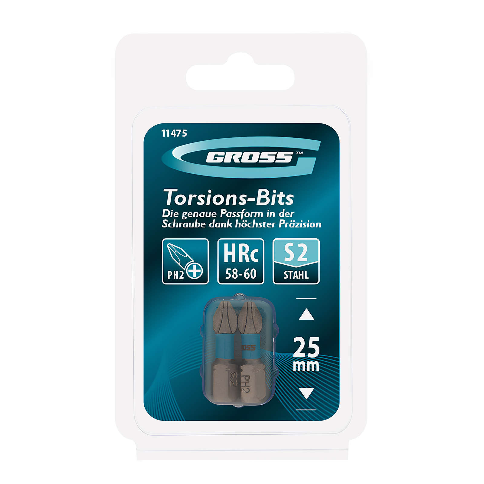 Бита торсионная PH2 x 25 мм, для ударных шуруповертов, 2 шт. Gross