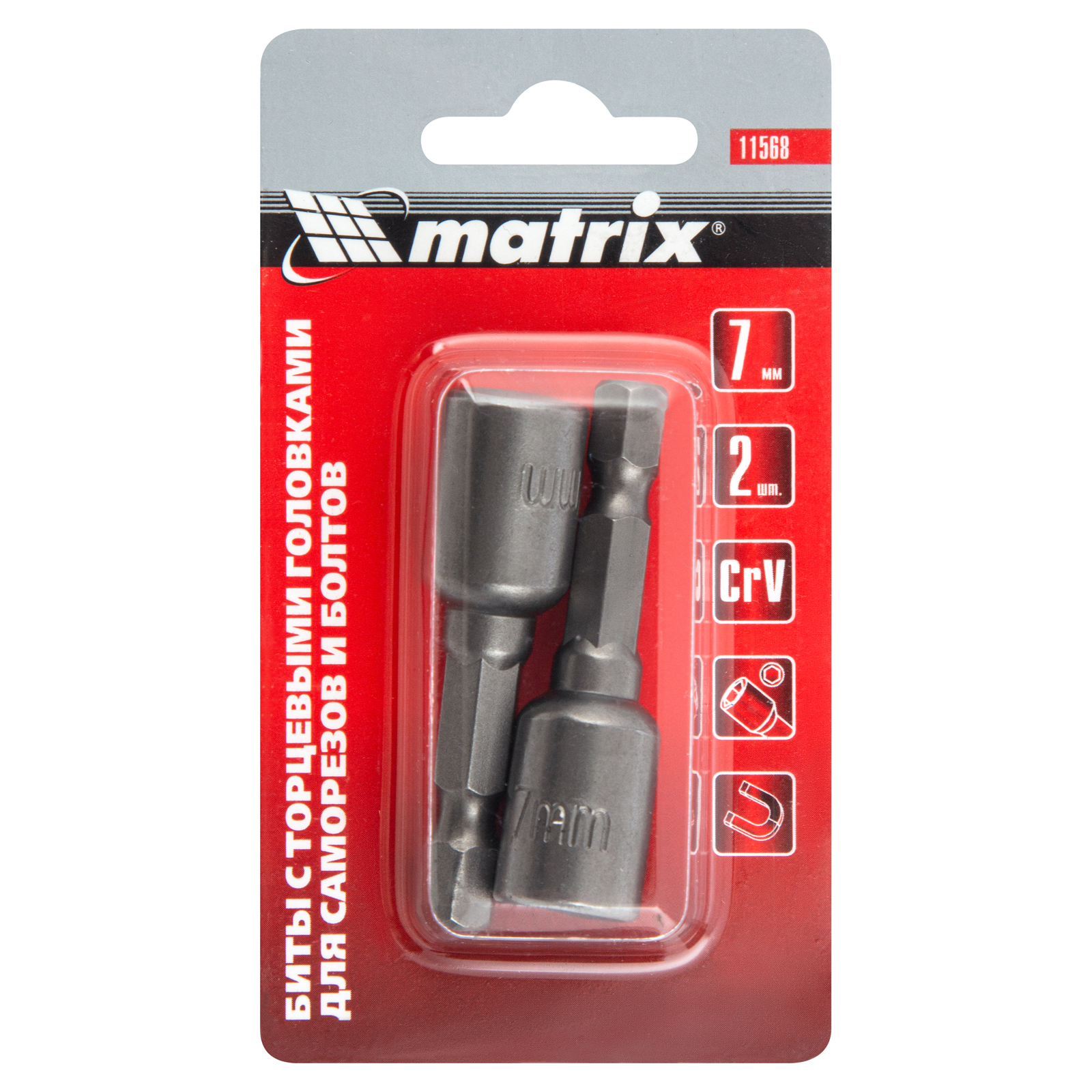 Биты с торцевыми головками 7 мм, 45 мм, 2 шт. Matrix |