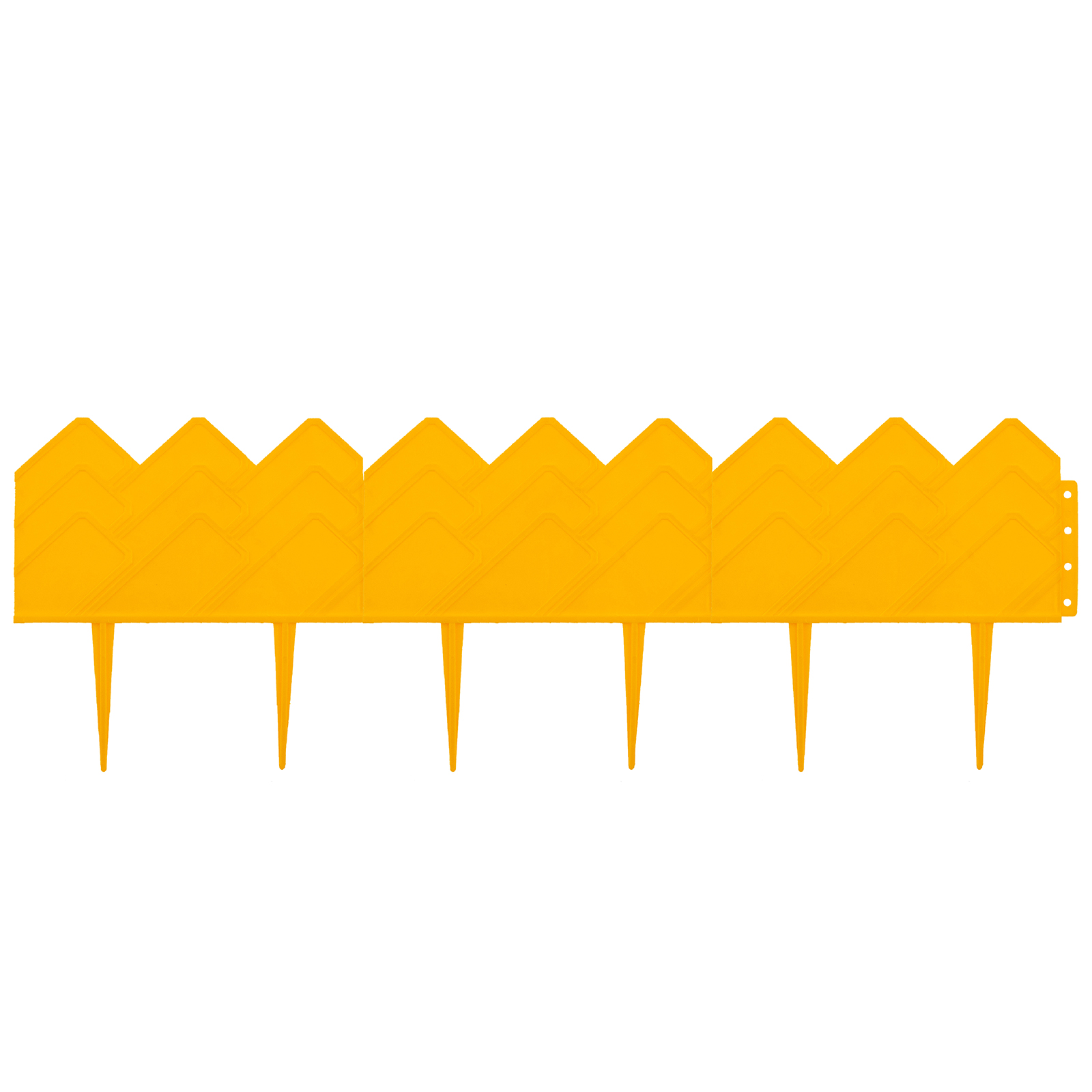 Желтый бордюр Palisad «Кантри» 65055 размером 14 х 310 см служит для зонирования территории. В комплект входит 13 секций, с помощью которых можно оформить цветники, грядки и приствольные круги деревьев, а также разграничить дорожки и газоны.