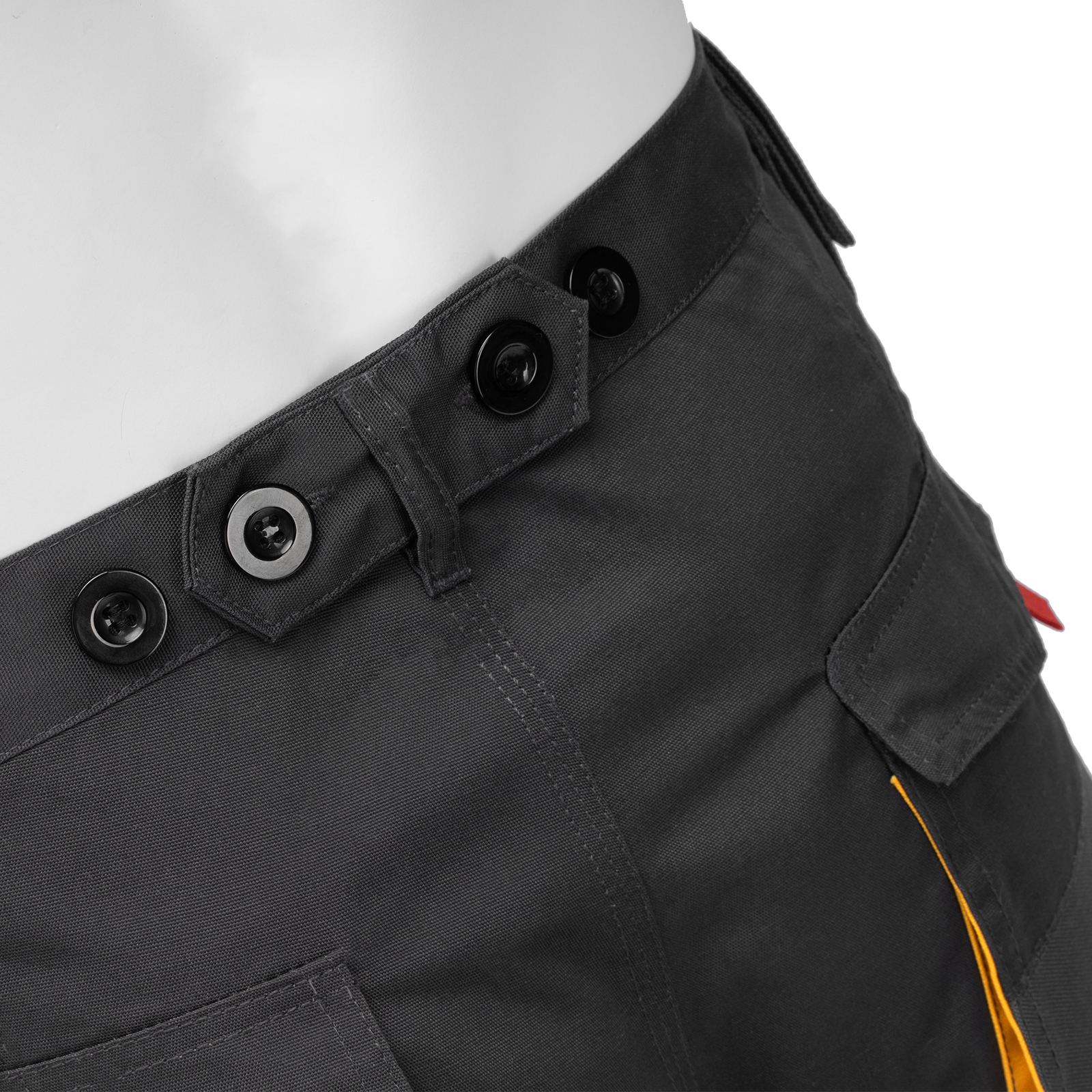 - Комфортное использование — пояс с регулировкой объема талии при помощи пуговиц, со шлевками для ремня, обеспечивает удобную посадку.