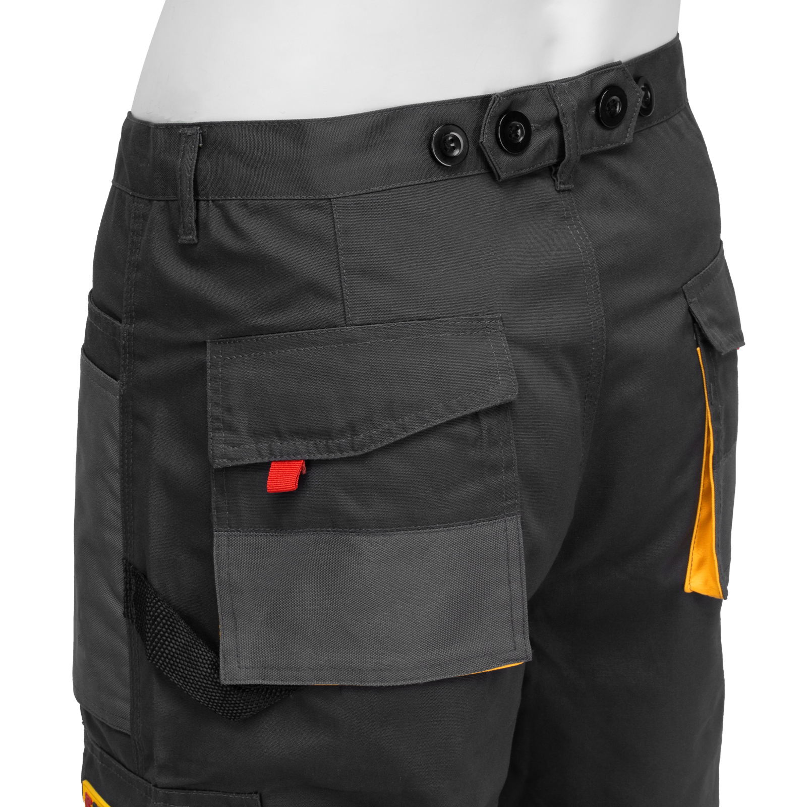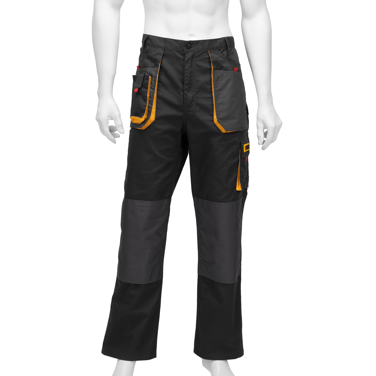 Рабочие брюки Denzel 90384 размера XL рассчитаны на рост 184-188 см и используются для выполнения профессиональных строительных, ремонтных, сантехнических и производственных работ в теплое время года или в отапливаемом помещении. Защищают пользователя от общих производственных загрязнений, нетоксичной пыли, ветра и незначительных механических воздействий. Изготовлены из ткани плотностью 260 г/м² (65% полиэфир, 35% хлопок). За счет наличия хлопковых волокон в составе ткань хорошо пропускает воздух и приятна на теле, полиэфир обеспечивает устойчивость к истиранию. Брюки выполнены в практичном темно-сером цвете.
