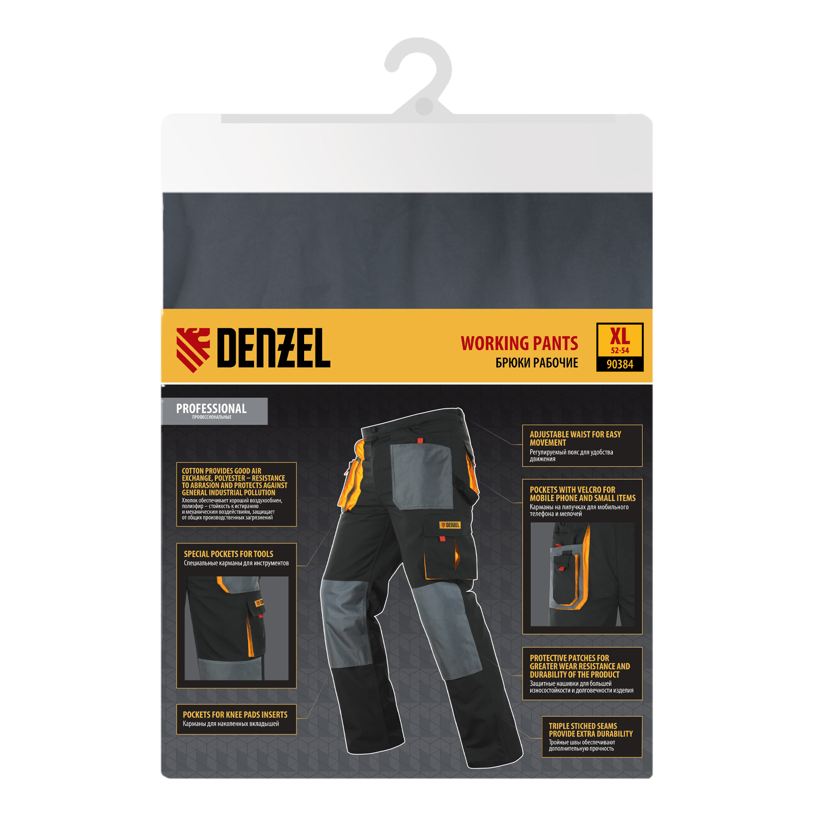 Брюки профессиональные рабочие, 65% полиэстер 35% хлопок, XL Denzel