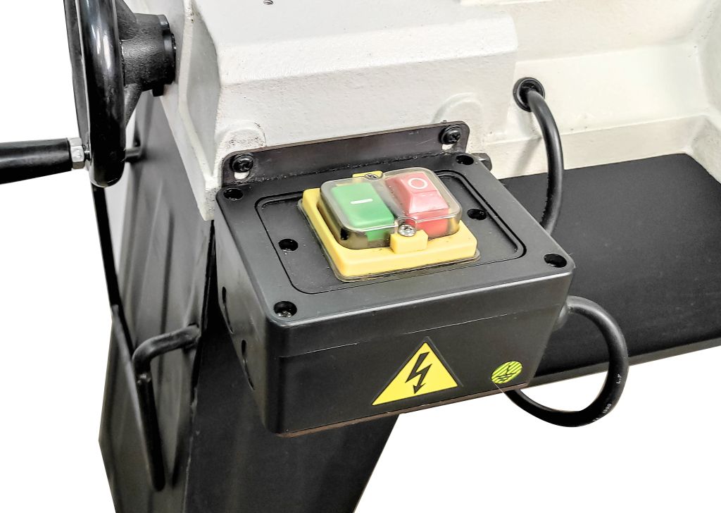 - Специальные колеса позволяют с легкостью перемещать ленточную пилу по производственному участку;