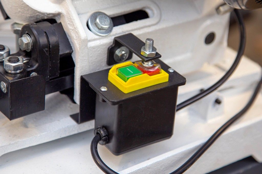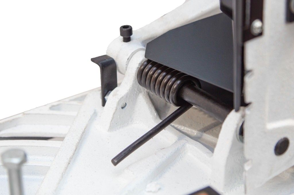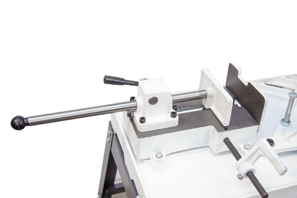 - Зажим заготовки производится тисками вручную, за счет вращения маховика, подача заготовки - также вручную;