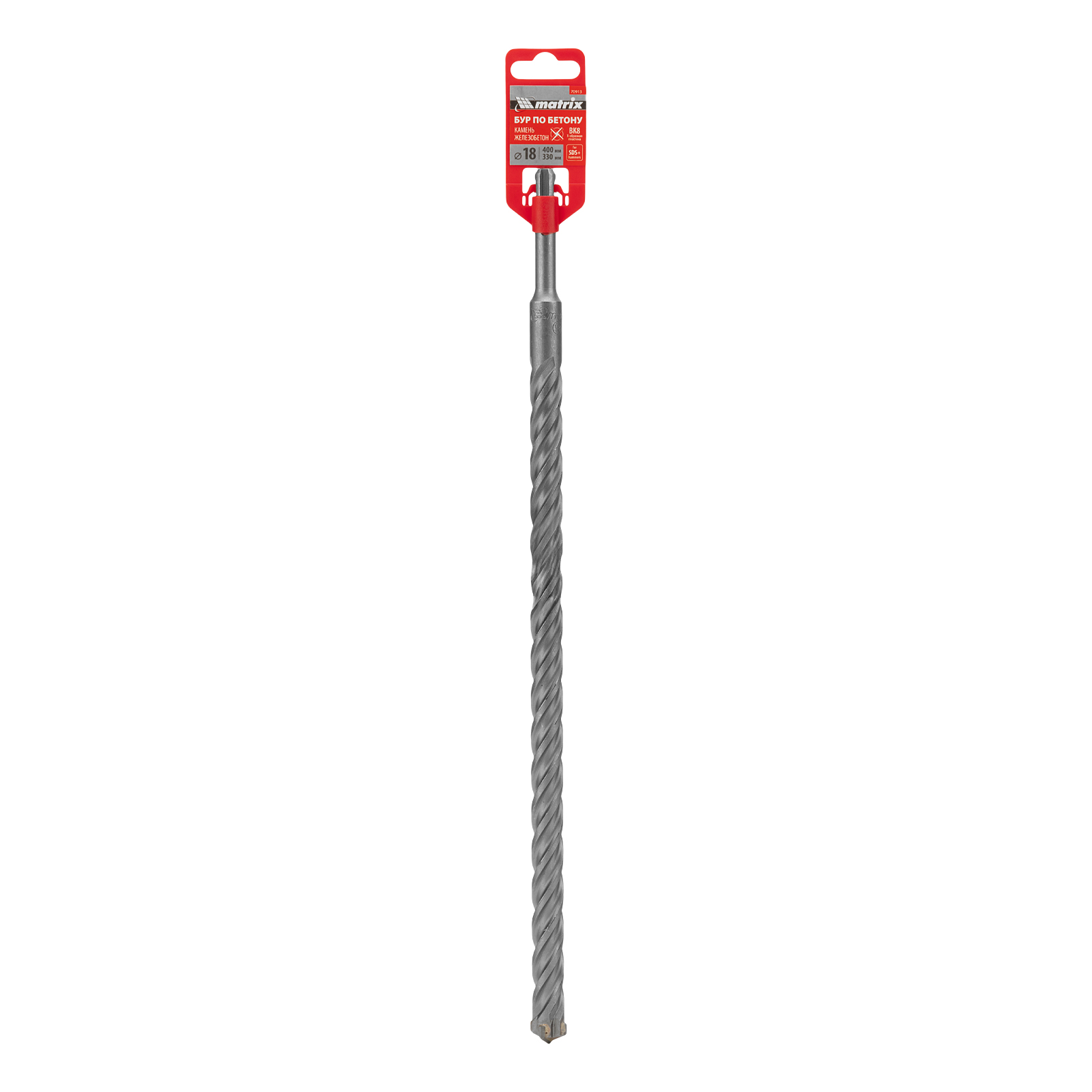 Бур по бетону Matrix 70913 длиной 400 мм, с хвостовиком SDS-plus и крестовой пластиной, предназначен для получения отверстий диаметром 18 мм в бетоне, камне и кирпиче. Крестовая пластина обеспечивает эффективную работу с твердыми материалами, в том числе армированным бетоном. Бур устанавливается в патрон перфоратора и используется во время проведения строительных работ.