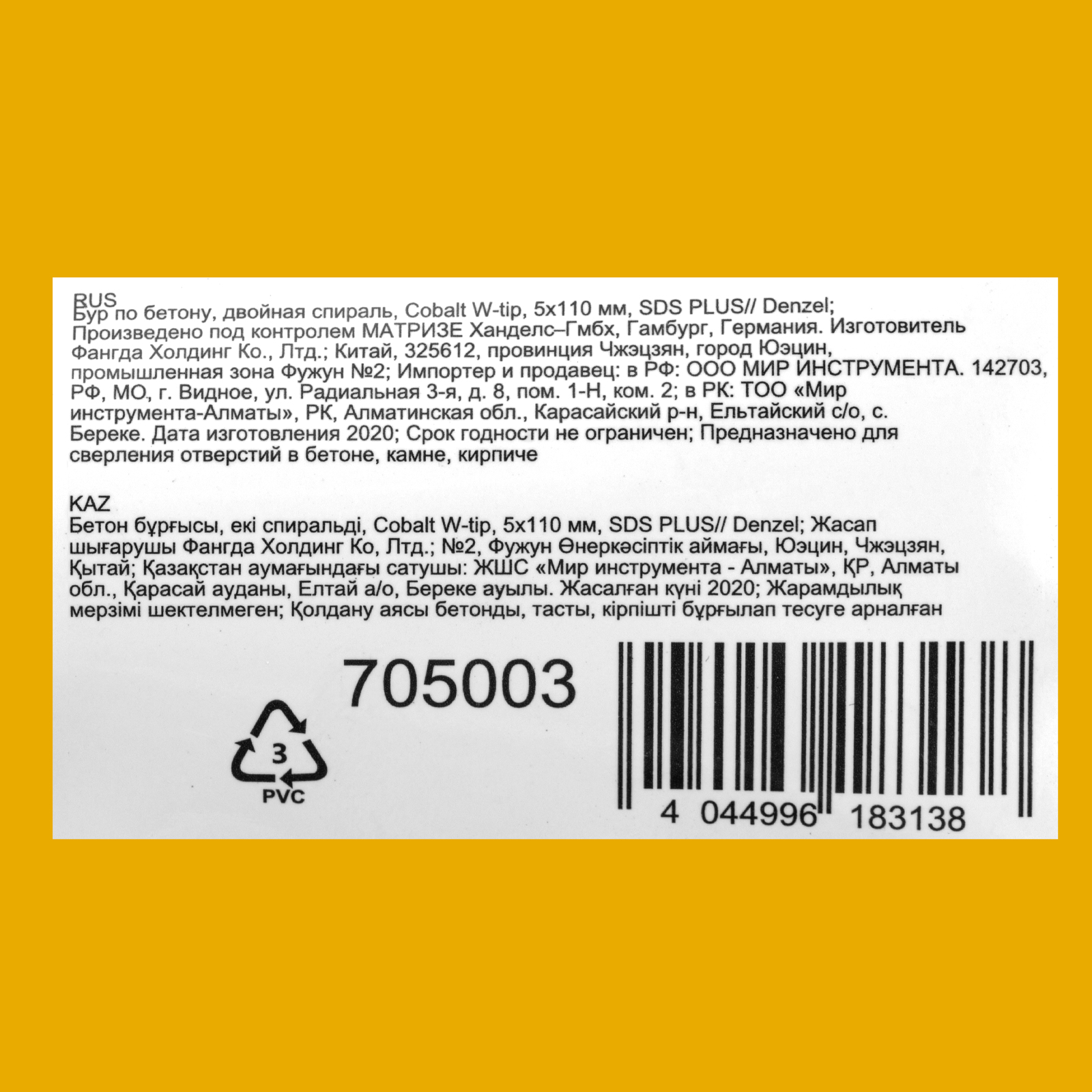 Бур по бетону Denzel Cobalt W-tip 705003 размером 5 х 110 мм, с хвостовиком SDS-plus и двойной спиралью, предназначен для сверления бетона, кирпича и камня. Используется в качестве оснастки для перфораторов с патроном SDS-plus. Бур оптимален для проведения строительных, ремонтных, монтажных работ.