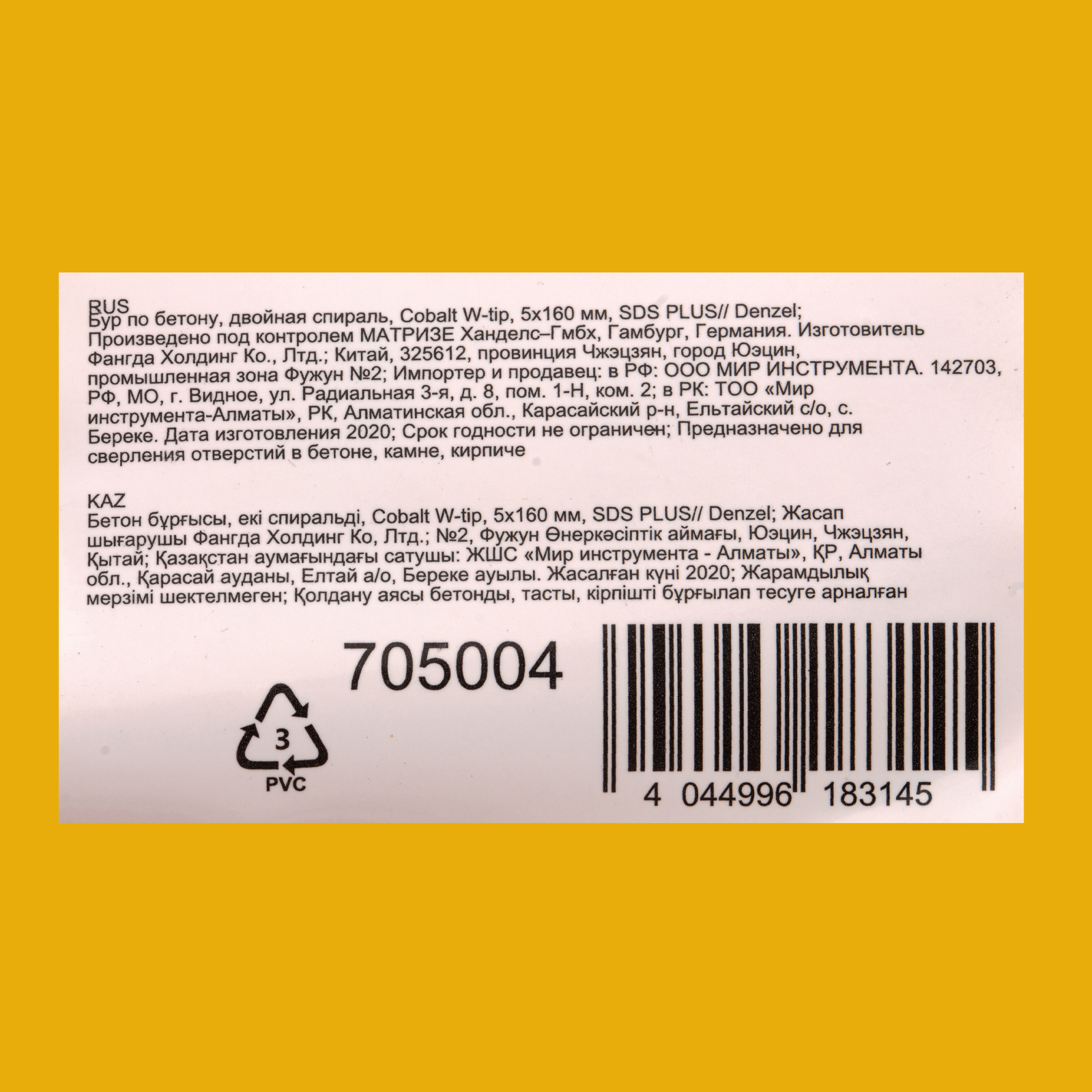 Бур по бетону Denzel Cobalt W-tip 705004 размером 5 х 160 мм, с хвостовиком SDS-plus и двойной спиралью, предназначен для сверления бетона, кирпича и камня. Используется в качестве оснастки для перфораторов с патроном SDS-plus. Бур оптимален для проведения строительных, ремонтных, монтажных работ.