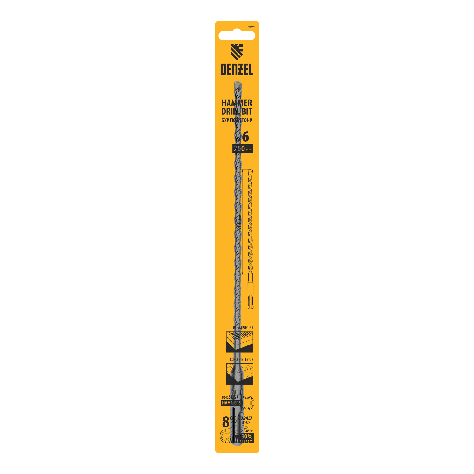 Бур по бетону, двойная спираль, три пылеотводящие кромки, 6 x 260 мм DENZEL