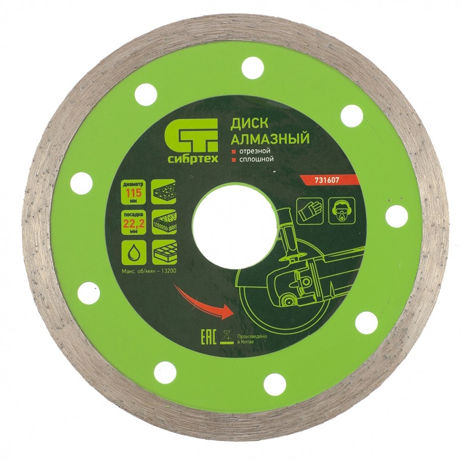 Алмазный отрезной сплошной диск Сибртех 731607 диаметром 115 х 22,2 мм применяется для мокрой резки керамогранитной, керамической плитки, а также мрамора и камня. Используется в качестве оснастки для болгарок и плиткорезов с посадочным диаметром 22,2 мм. Диск обладает хорошим рабочим ресурсом и рассчитан на долгую службу. Рез материалов необходимо проводить с использованием водяного охлаждения.