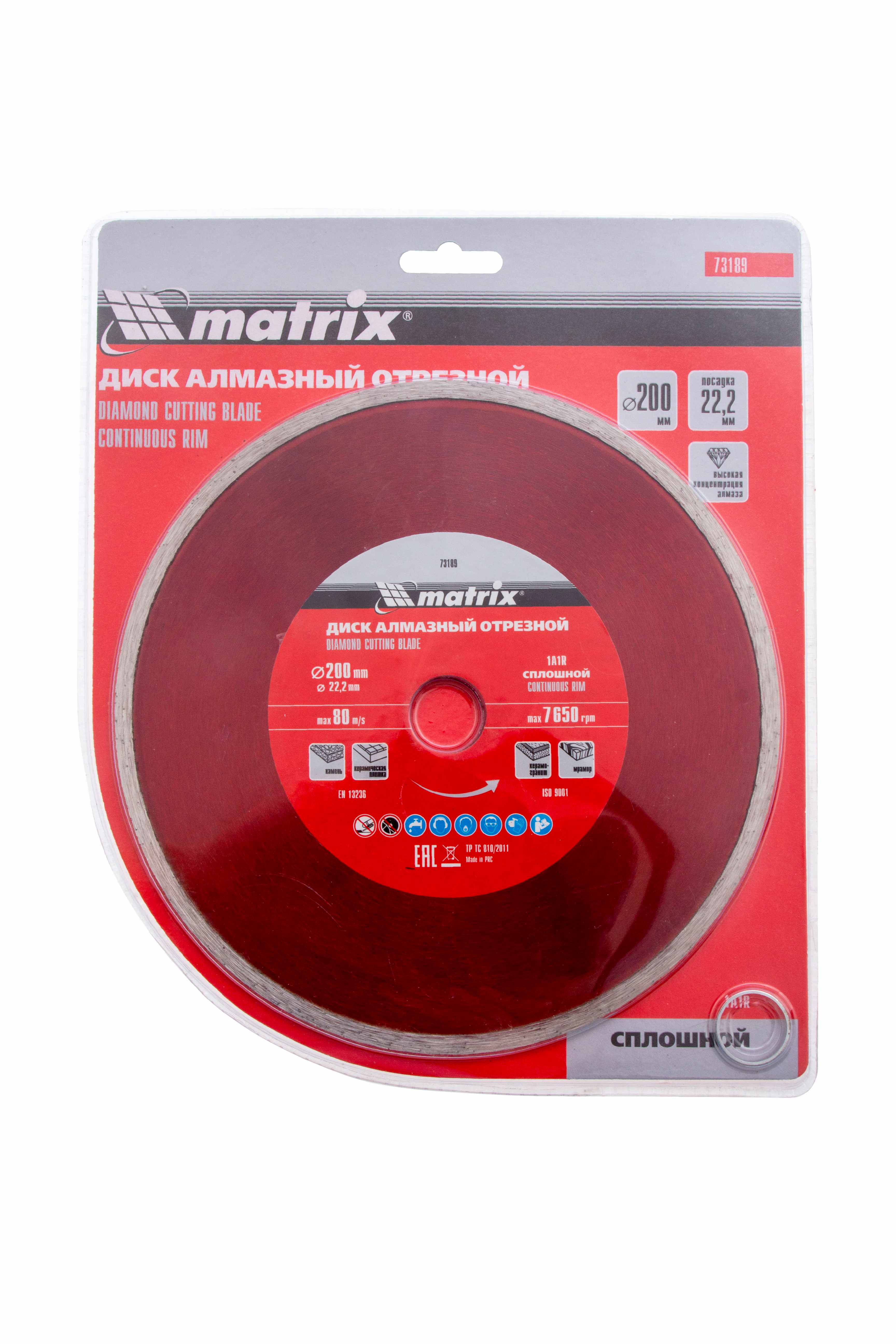 Отрезной алмазный сплошной диск Matrix 73189 диаметром 200 х 22,2 мм предназначен для мокрой резки мрамора, керамической плитки, керамогранита, натурального или искусственного камня. Устанавливается на углошлифовальную машину или плиткорез с посадочным диаметром 22,2 мм. Благодаря использованию водяного охлаждения улучшается качество реза, а также продлевается срок службы диска.