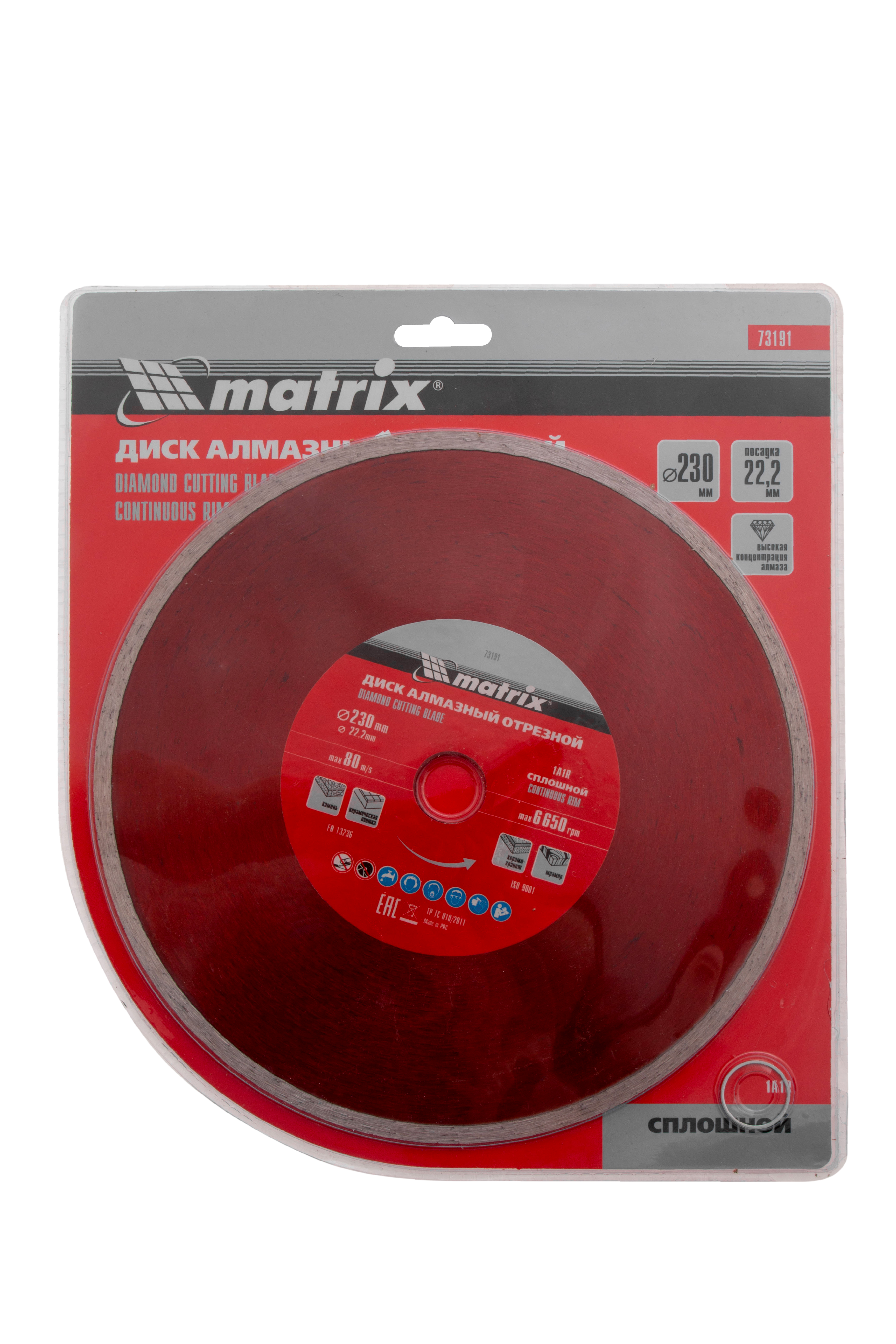 Диск алмазный, отрезной сплошной, 230 х 22.2 мм, мокрая резка Matrix Professional