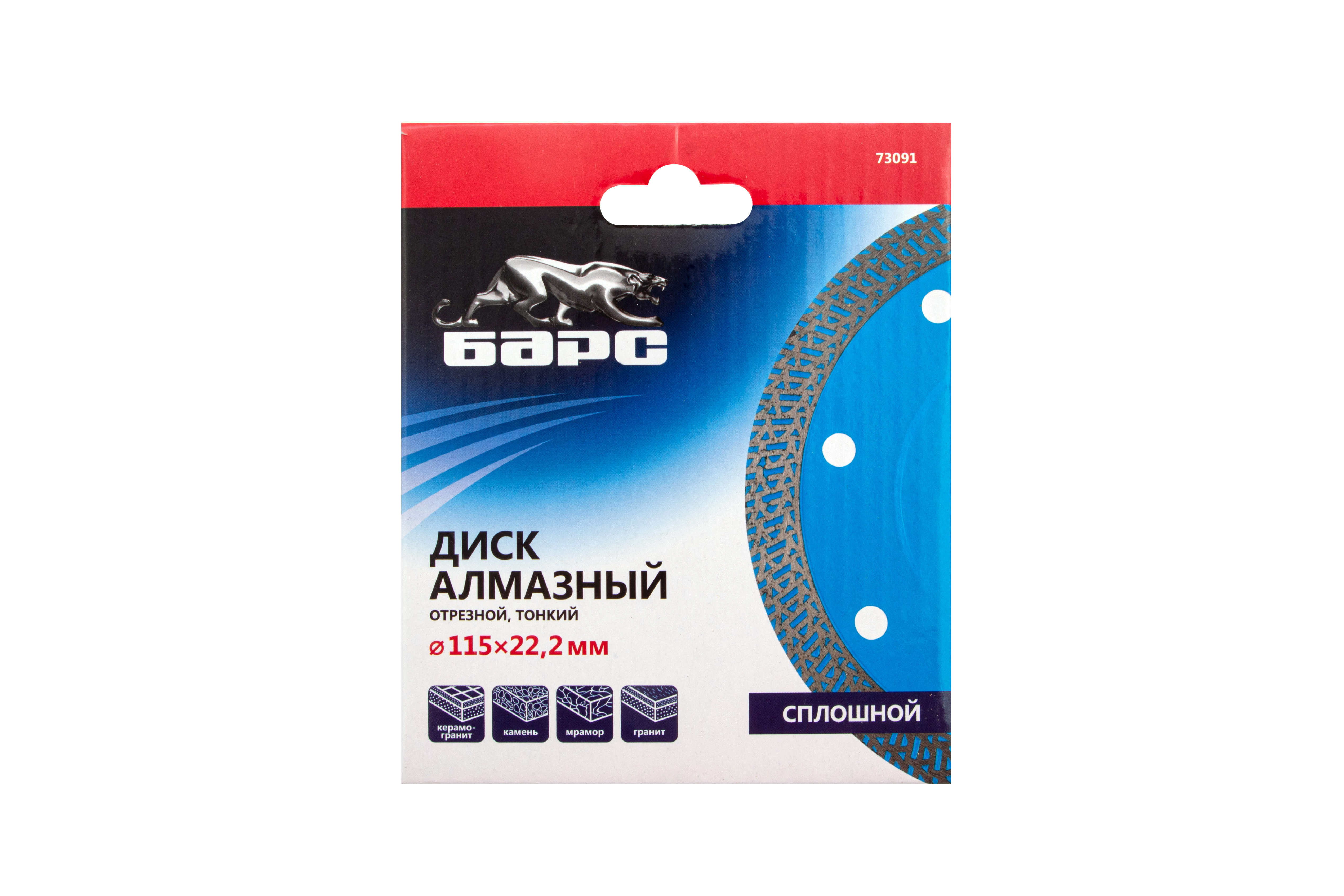 Диск алмазный, сплошной 115 х 22.2 мм, тонкий, сухая/мокрая резка Барс