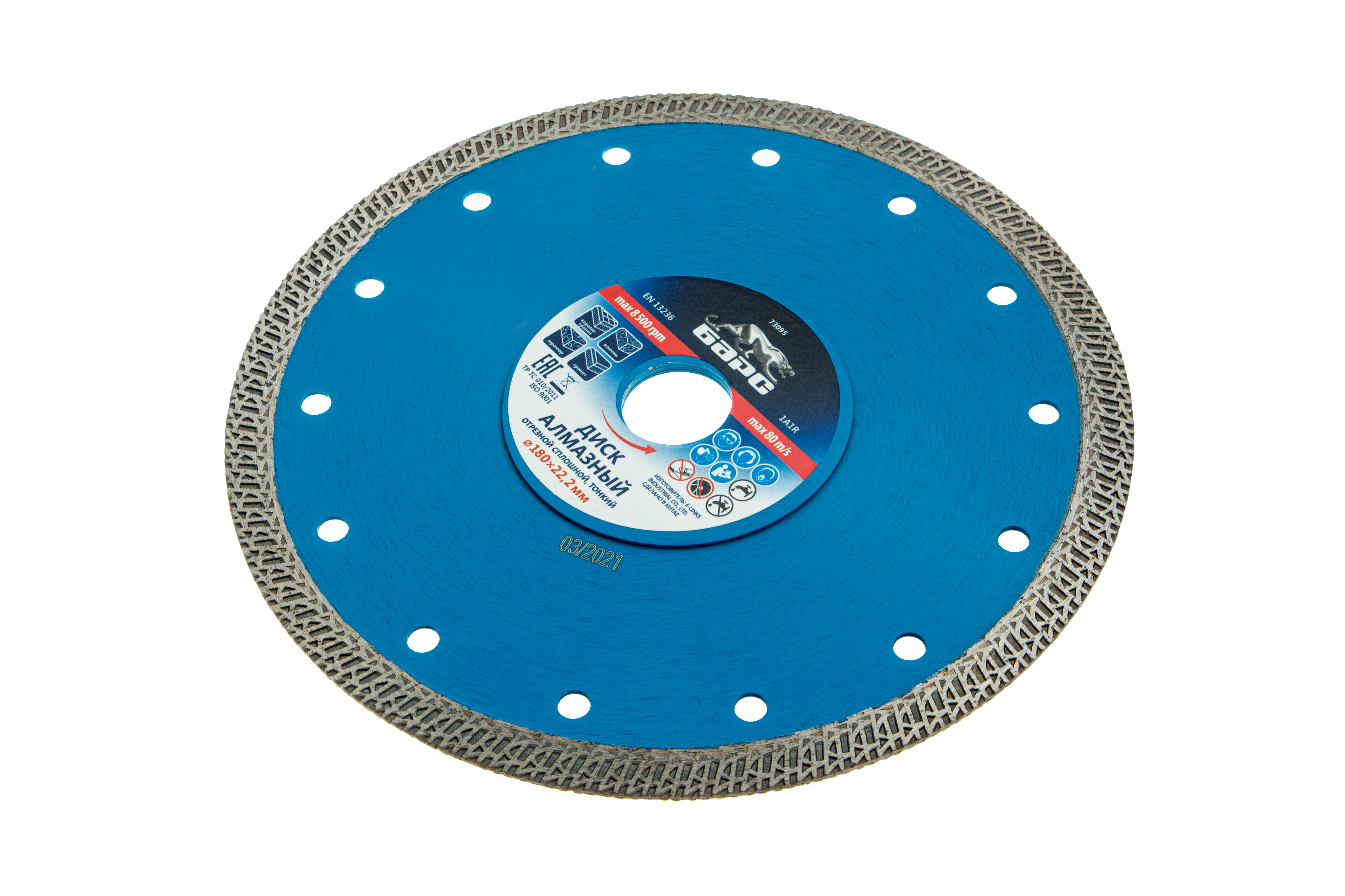 Диск алмазный, сплошной 180 х 22.2 мм, тонкий, сухая/мокрая резка Барс