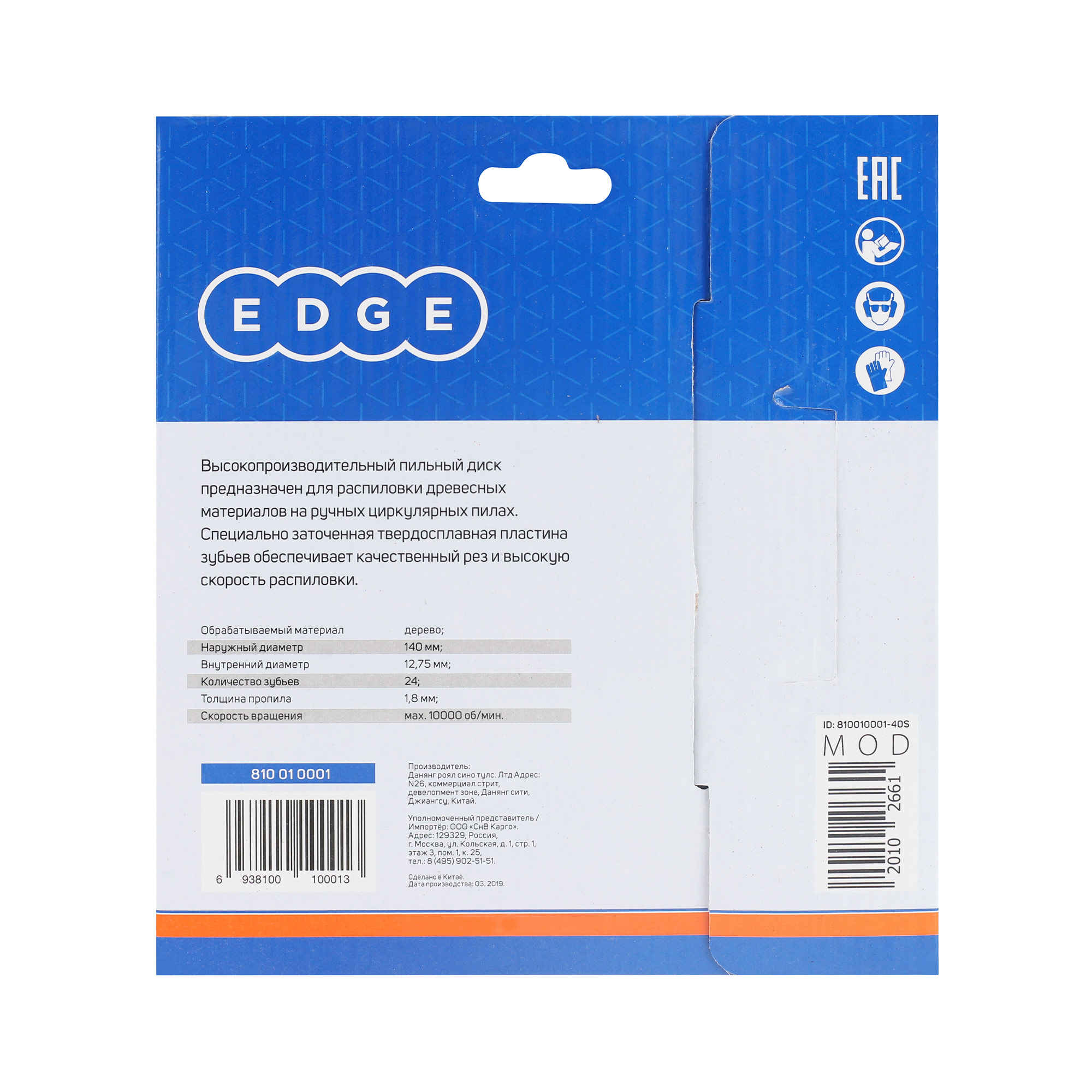 Диск пильный; Упаковка; |
