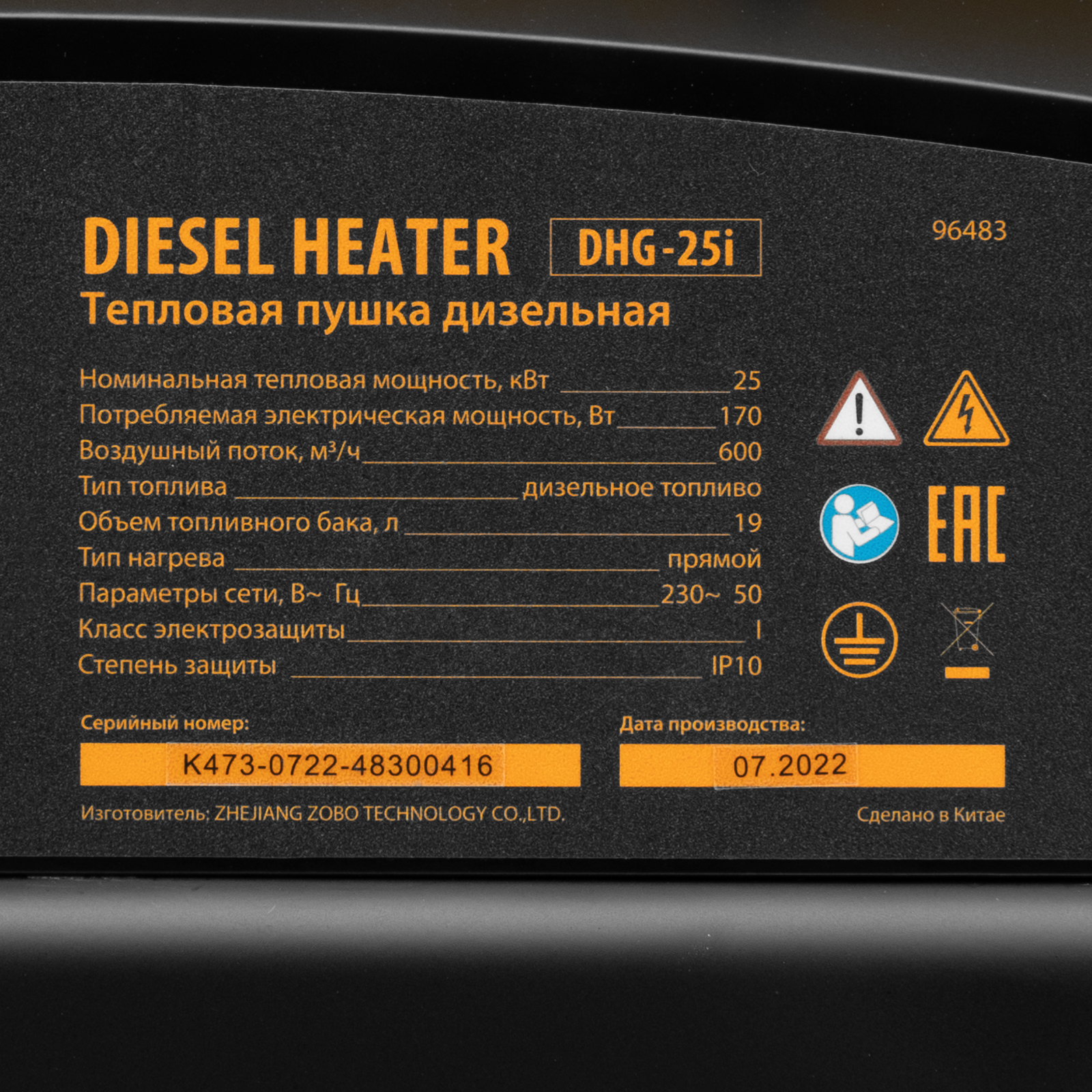 Дизельная тепловая пушка DHG-25i, 25 кВт, 600 м3/ч, прямой нагрев, термостат Denzel