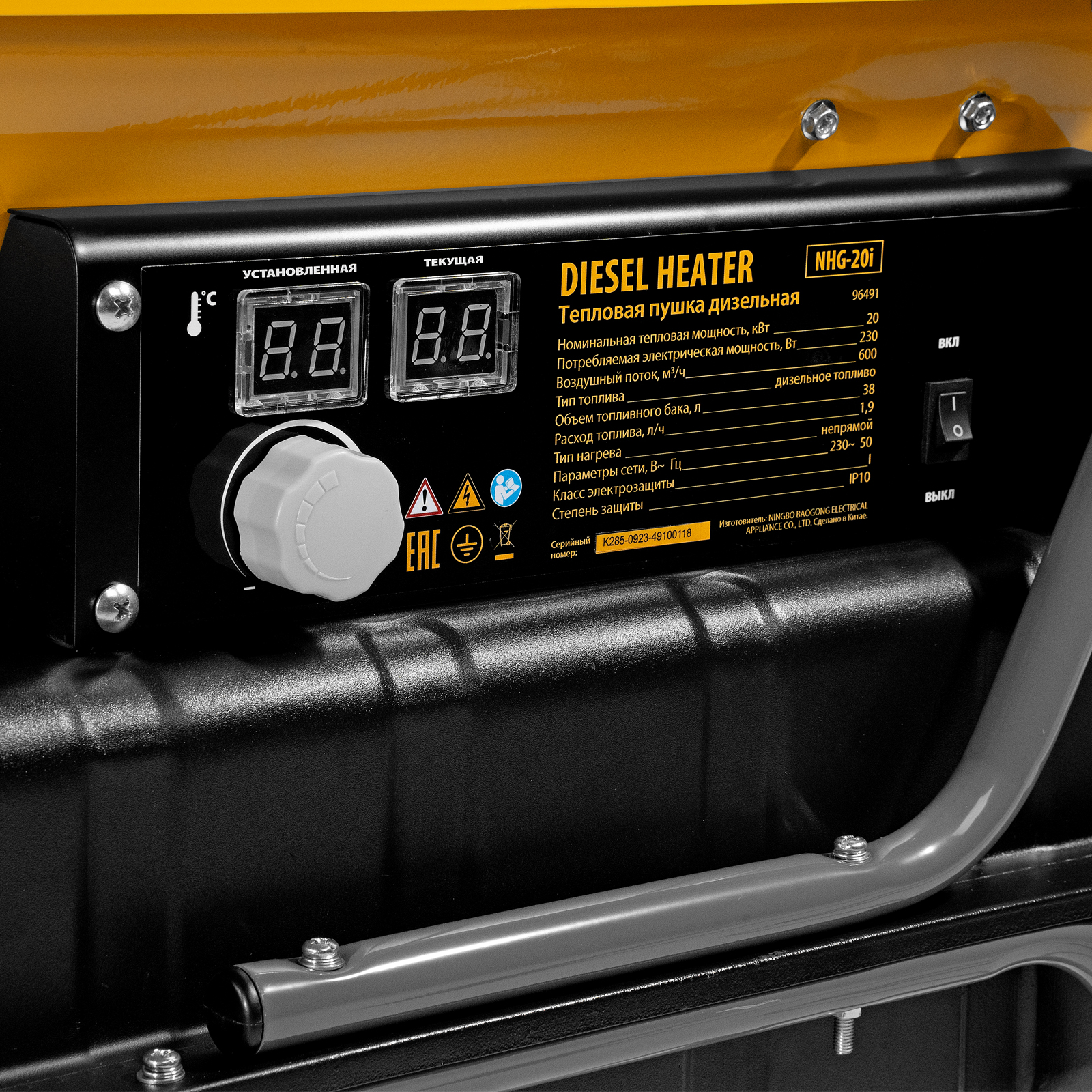 Дизельная тепловая пушка NHG-20i, 20 кВт, 600 м3/ч, непрямой нагрев, цифровой термостат Denzel