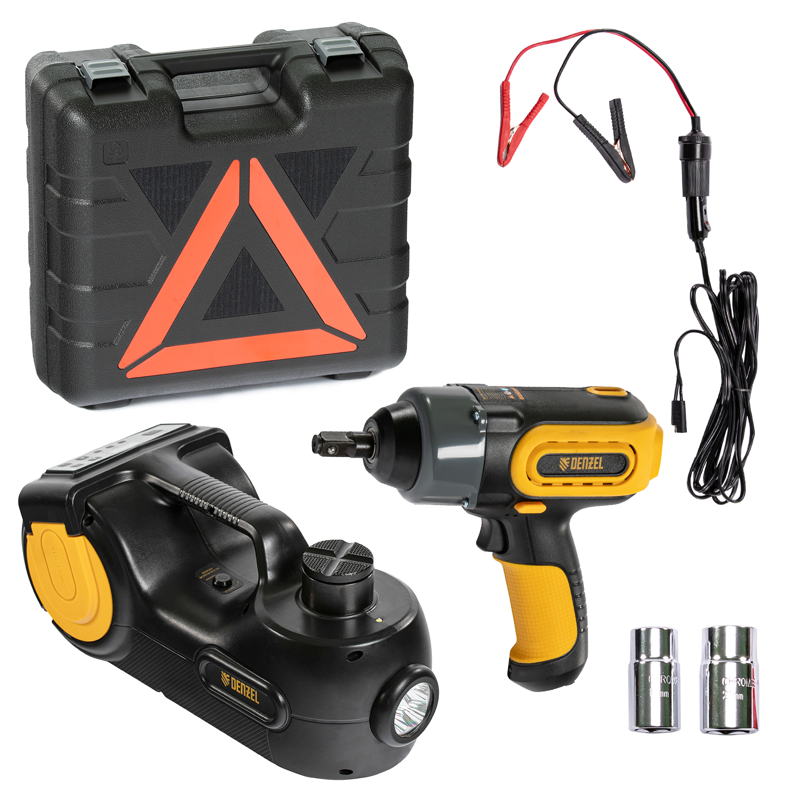 Домкрат электрогидравлический «3 в 1» (1,5 т), 12В, с гайковертом электрическим, в наборе Denzel |