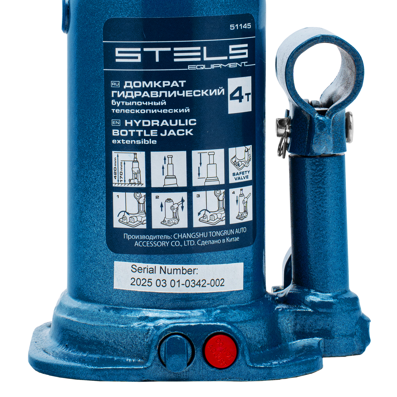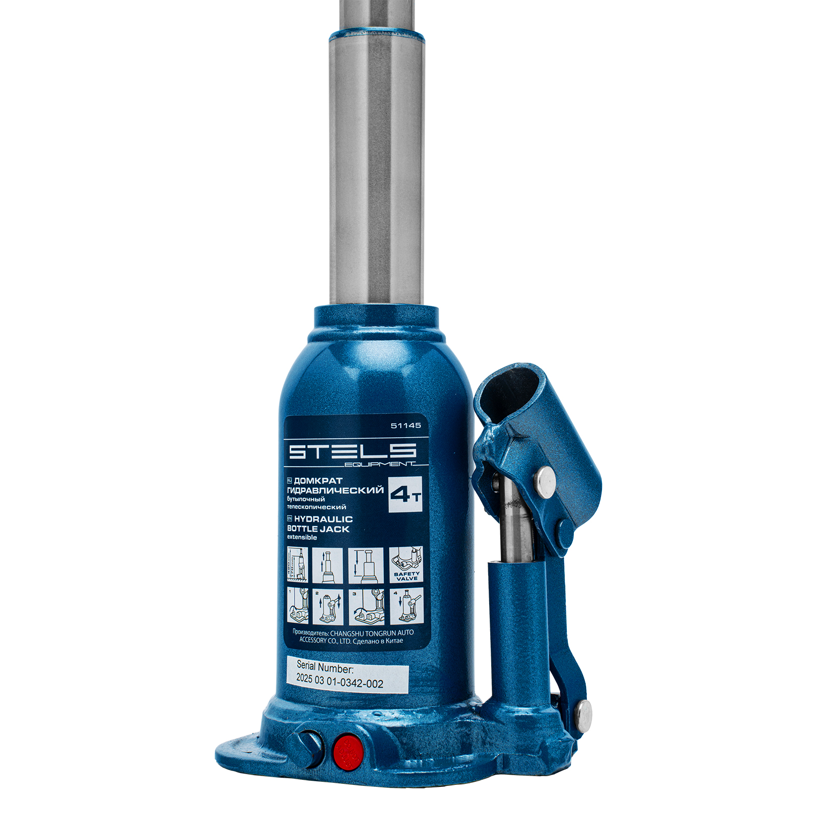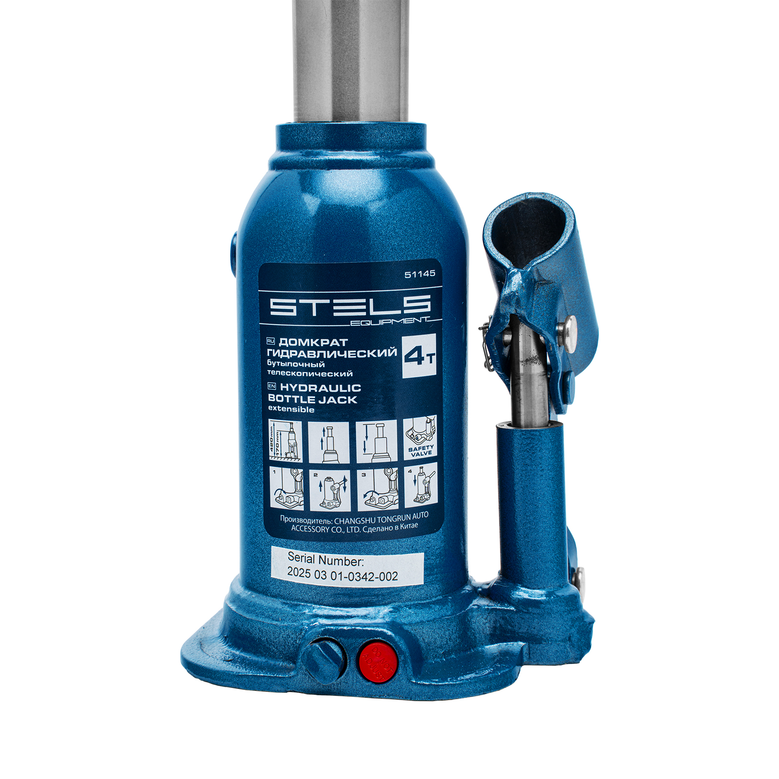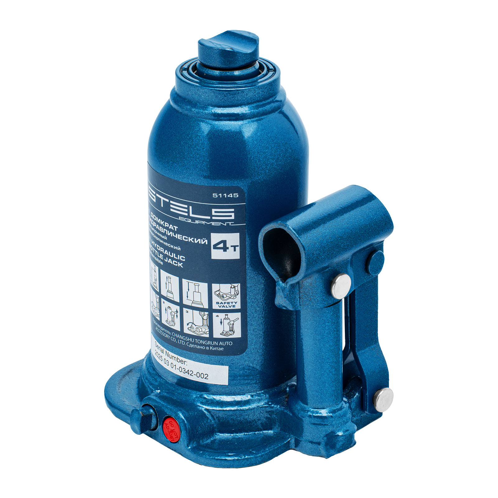 Гидравлический бутылочный телескопический домкрат Stels 51145 используется для поднятия грузов весом до 4 т с на высоту 170-420 мм. Не требует больших усилий и оптимален для автомобилей с большим клиренсом. Домкрат можно использовать в гараже для самостоятельного ремонта машины или в автосервисе для решения профессиональных задач.