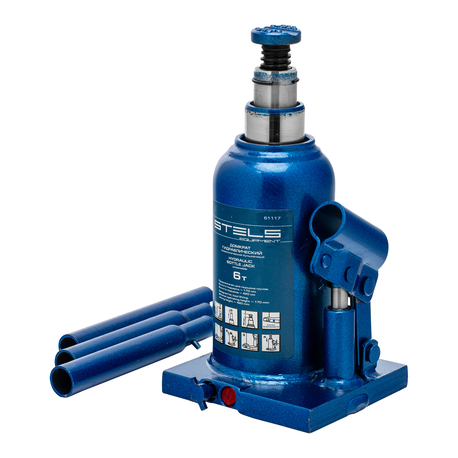 Гидравлический бутылочный телескопический домкрат Stels 51117 используется для поднятия грузов весом до 6 т с на высоту 170-420 мм. Не требует больших усилий и оптимален для автомобилей с большим клиренсом. Домкрат можно использовать в гараже для самостоятельного ремонта машины или в автосервисе для решения профессиональных задач.
