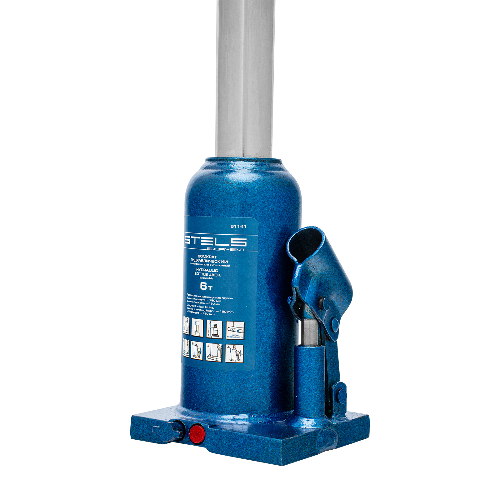 Домкрат гидравлический бутылочный телескопический, 6 т, h подъема 190-480 мм Stels