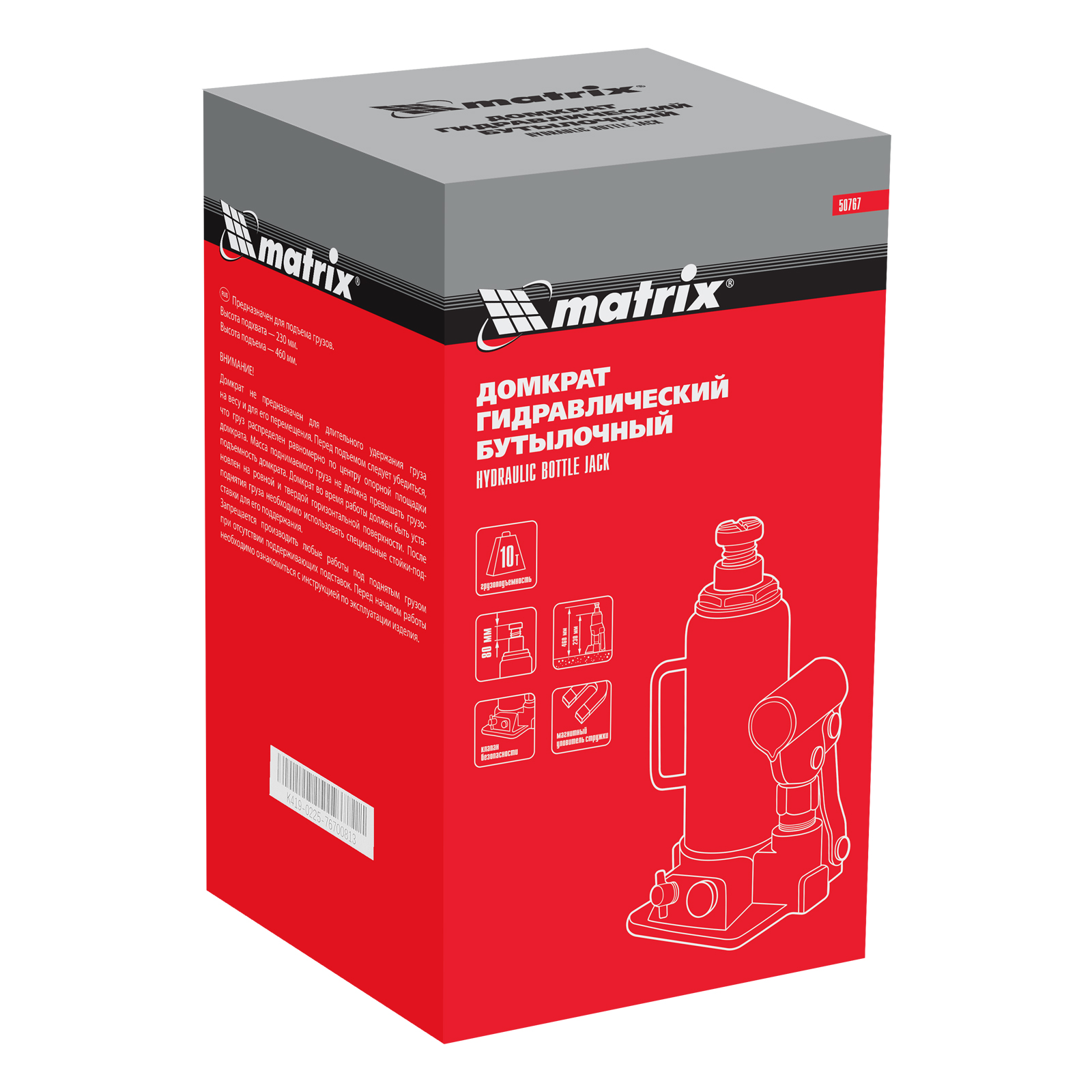 Домкрат гидравлический бутылочный, 10 т, h подъема 230-460 мм Matrix
