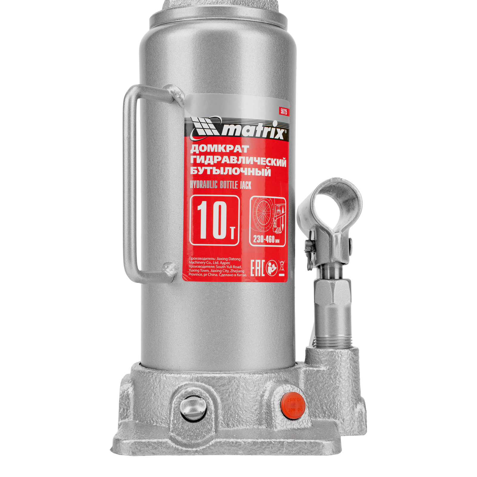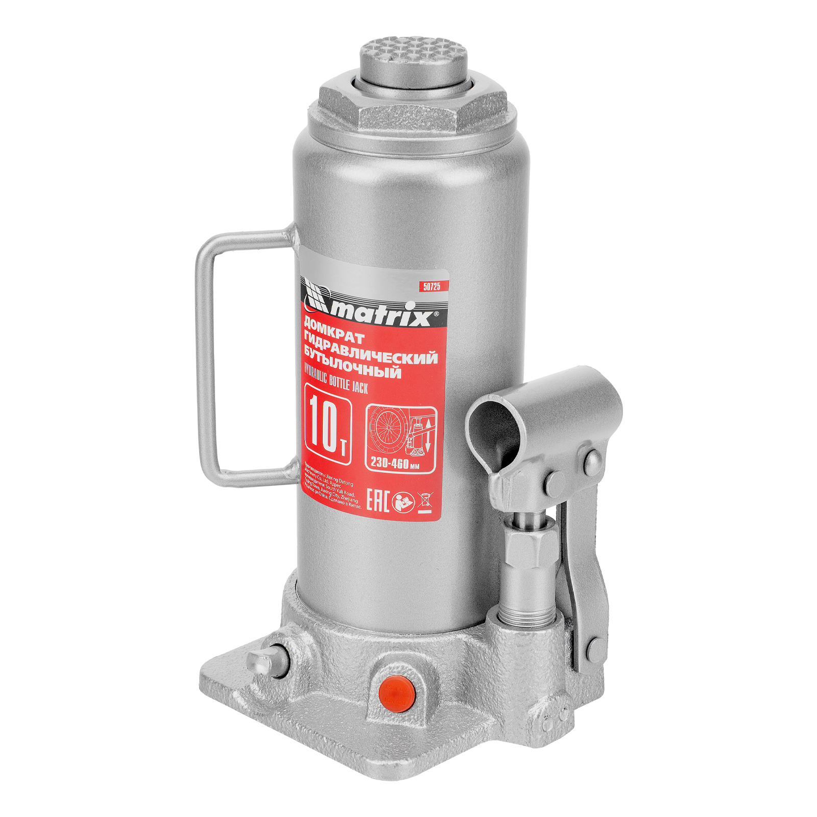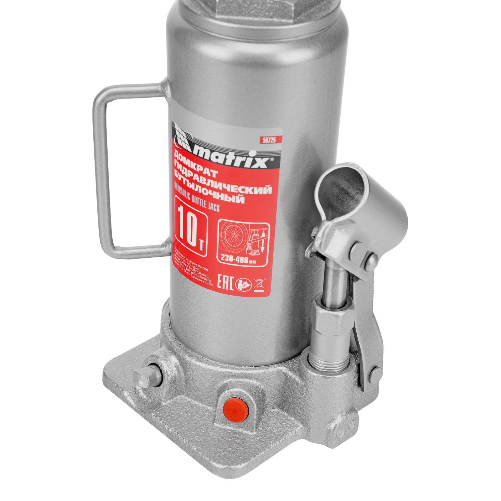 Домкрат гидравлический бутылочный, 10 т, высота подъема 230-460 мм Matrix