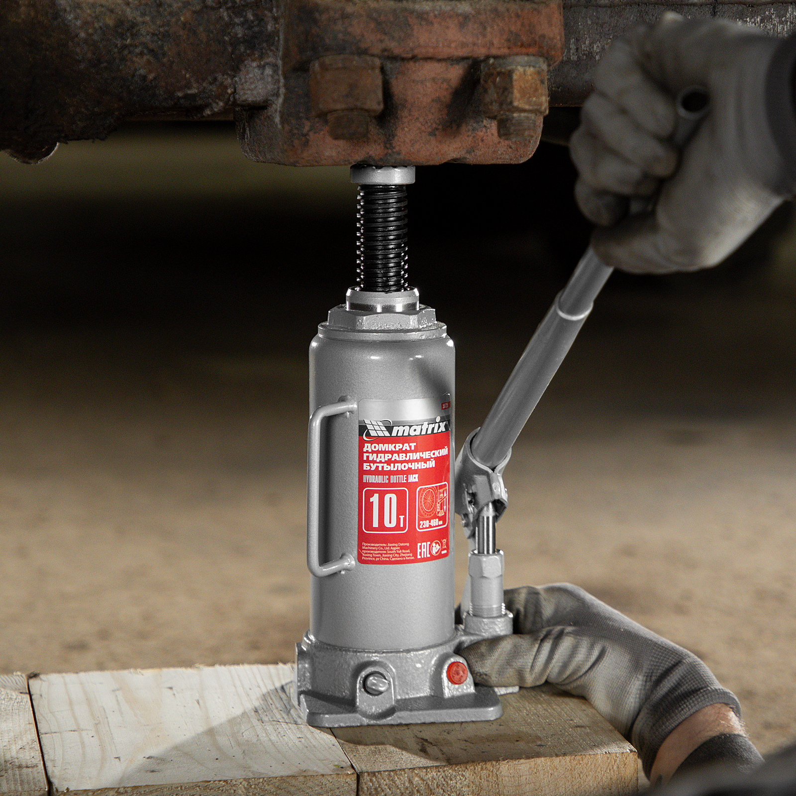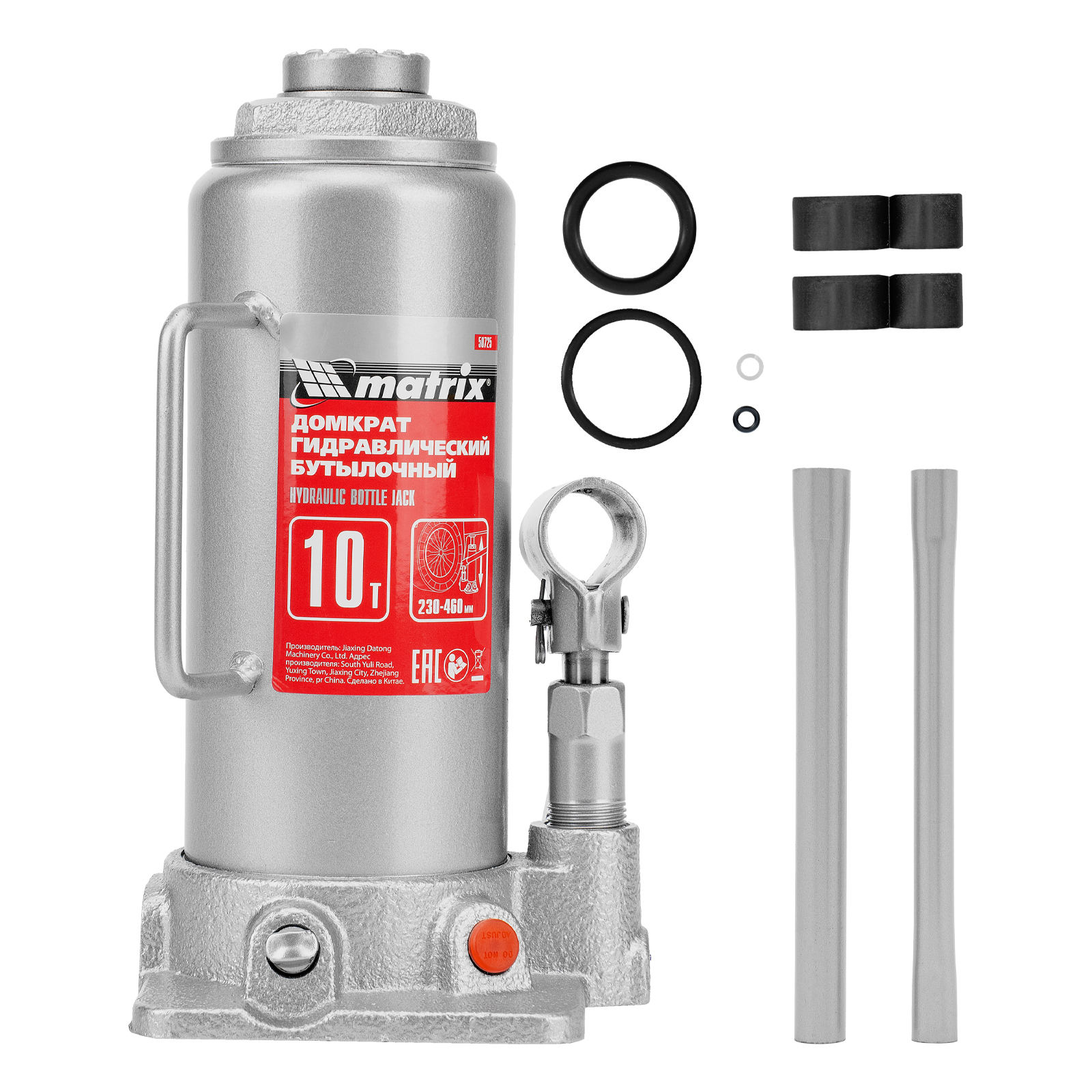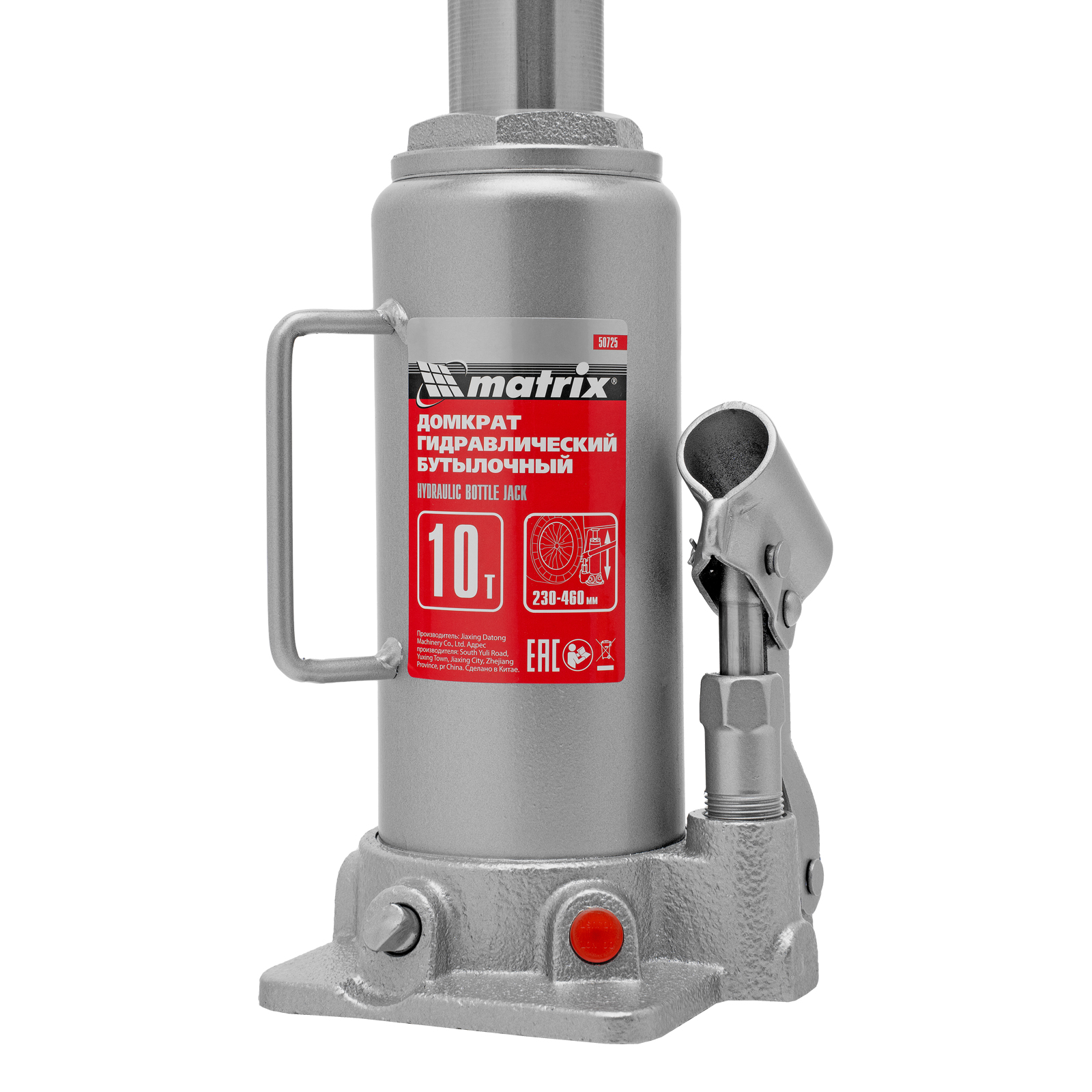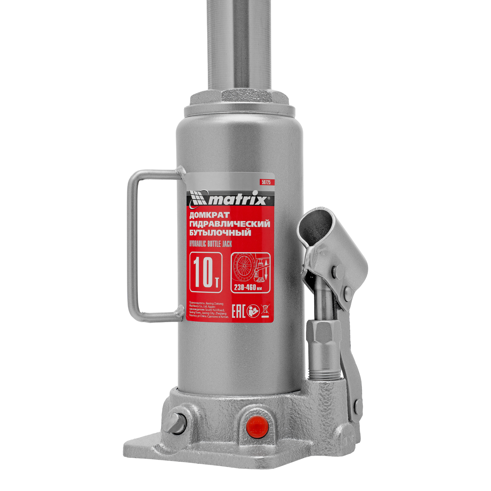 Домкрат гидравлический бутылочный, 10 т, высота подъема 230-460 мм Matrix