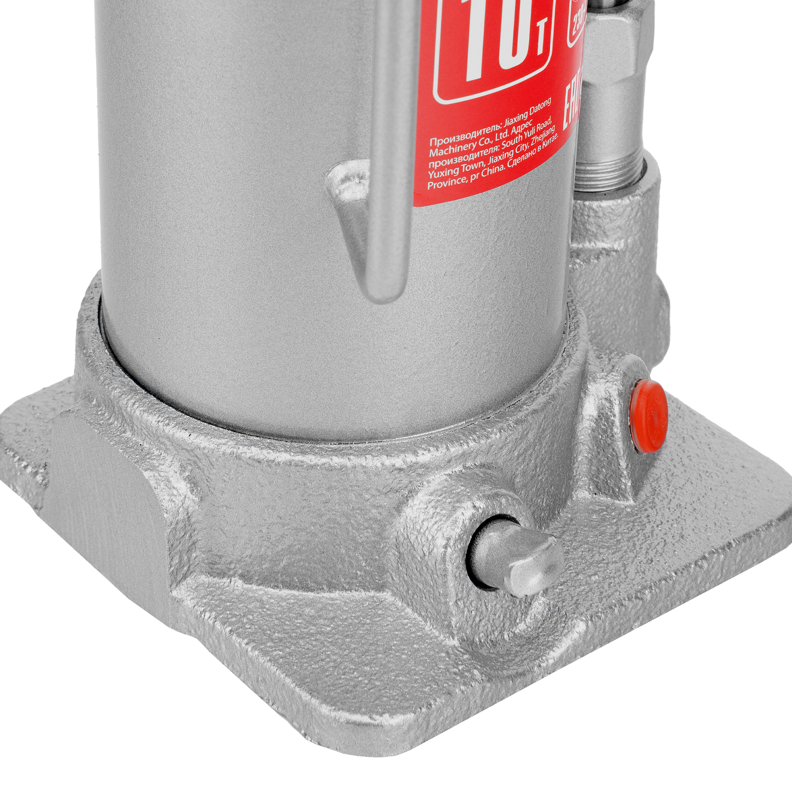 - Надежная конструкция — домкрат имеет устойчивое чугунное основание, корпус из высокопрочной стали, а также полированный шток, увеличивающий срок службы.