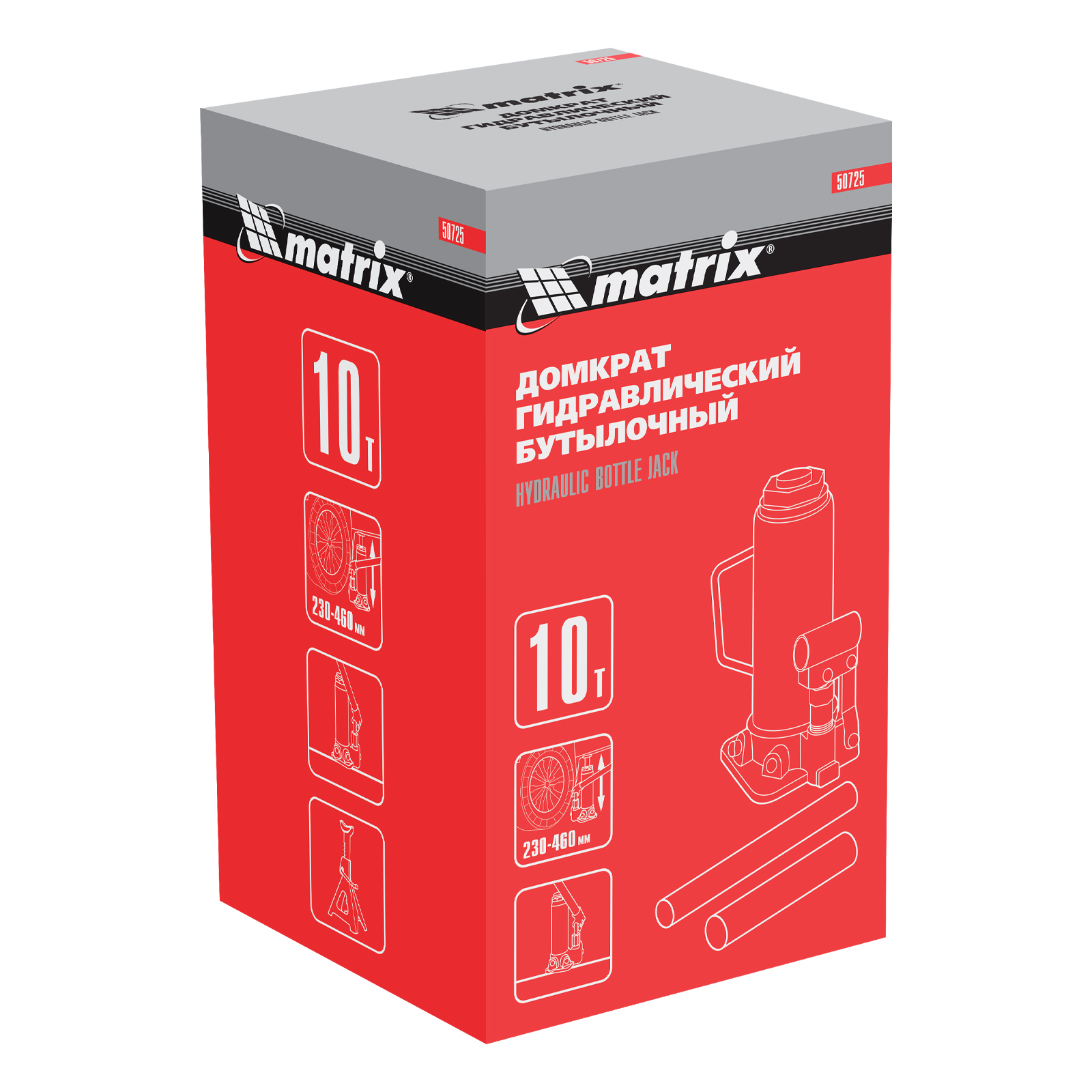 Домкрат гидравлический бутылочный Matrix 50725 используется для поднятия грузов массой до 10 т на высоту 230-460 мм. Подходит для автомобилей с высоким клиренсом. Домкрат будет полезен автолюбителям в гараже и дороге, а также сотрудникам СТО.
