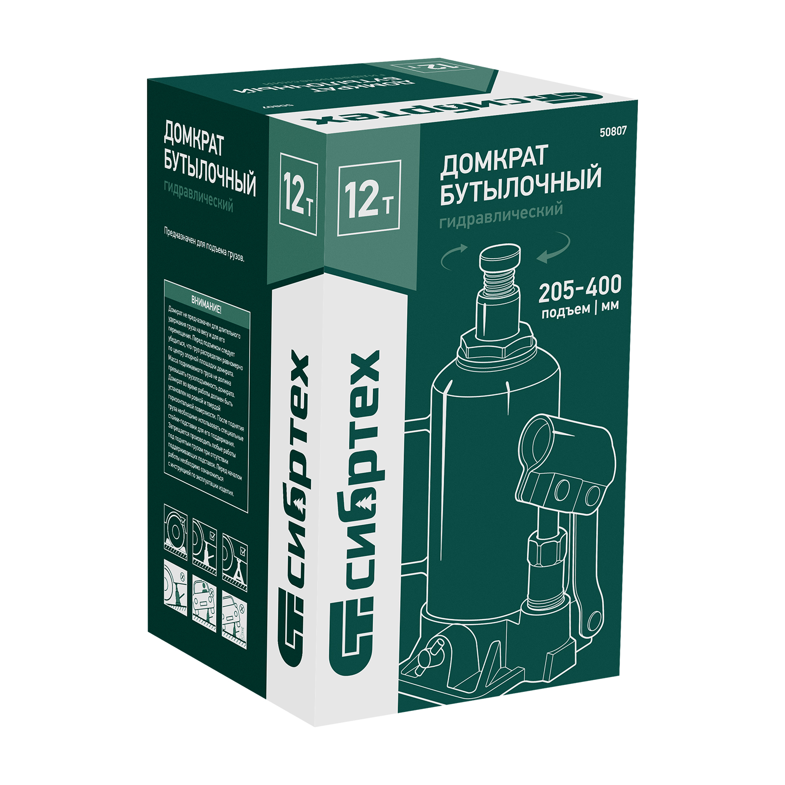Домкрат гидравлический бутылочный Сибртех 50807 предназначен для подъема грузов массой до 12 т на высоту от 205 до 400 мм. Не требует больших усилий от пользователя и значительно облегчает рабочий процесс. Домкрат будет полезен при проведении техобслуживания машины в автосервисе или гараже.