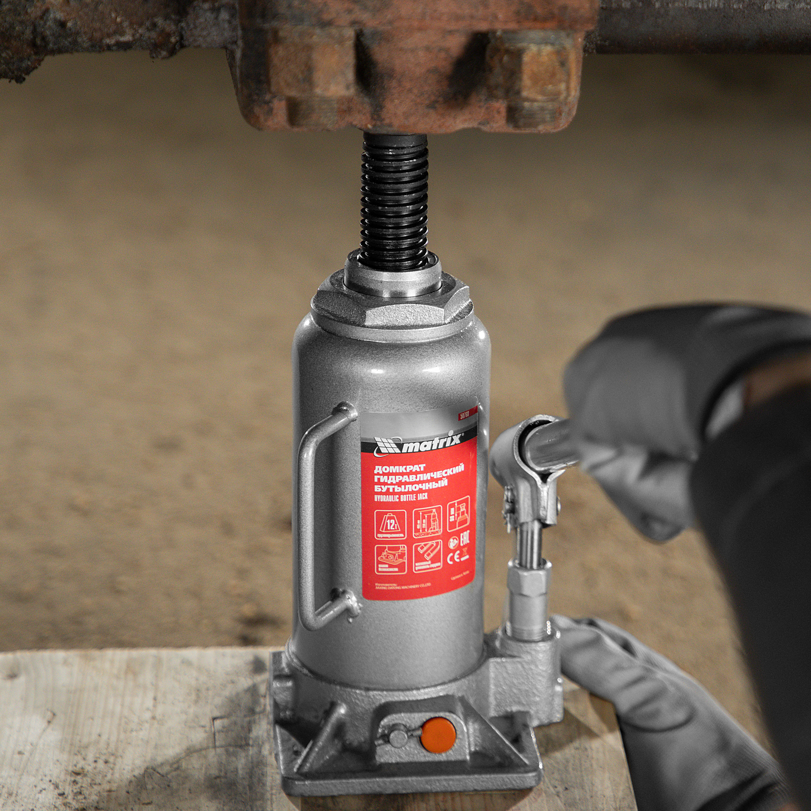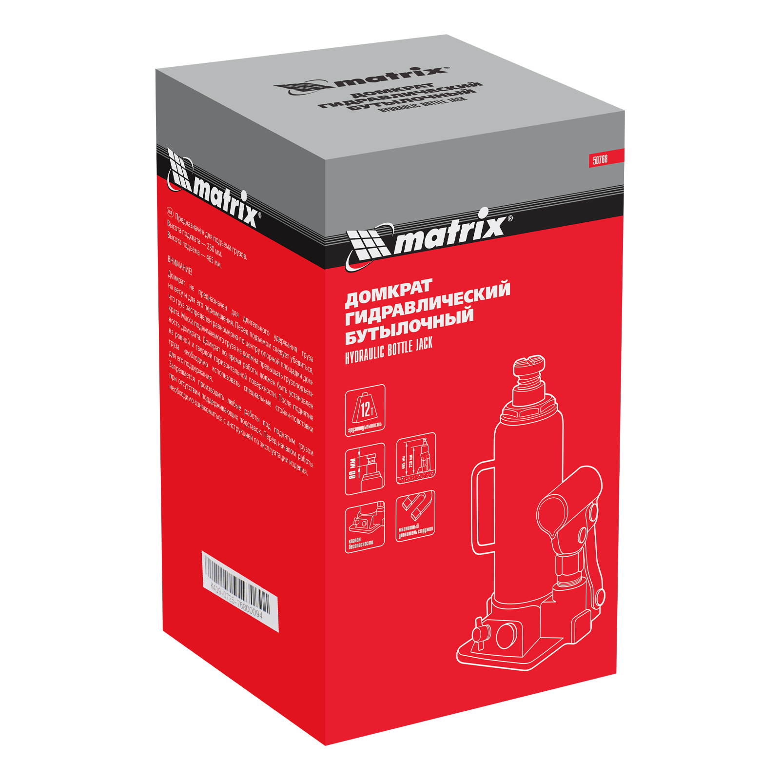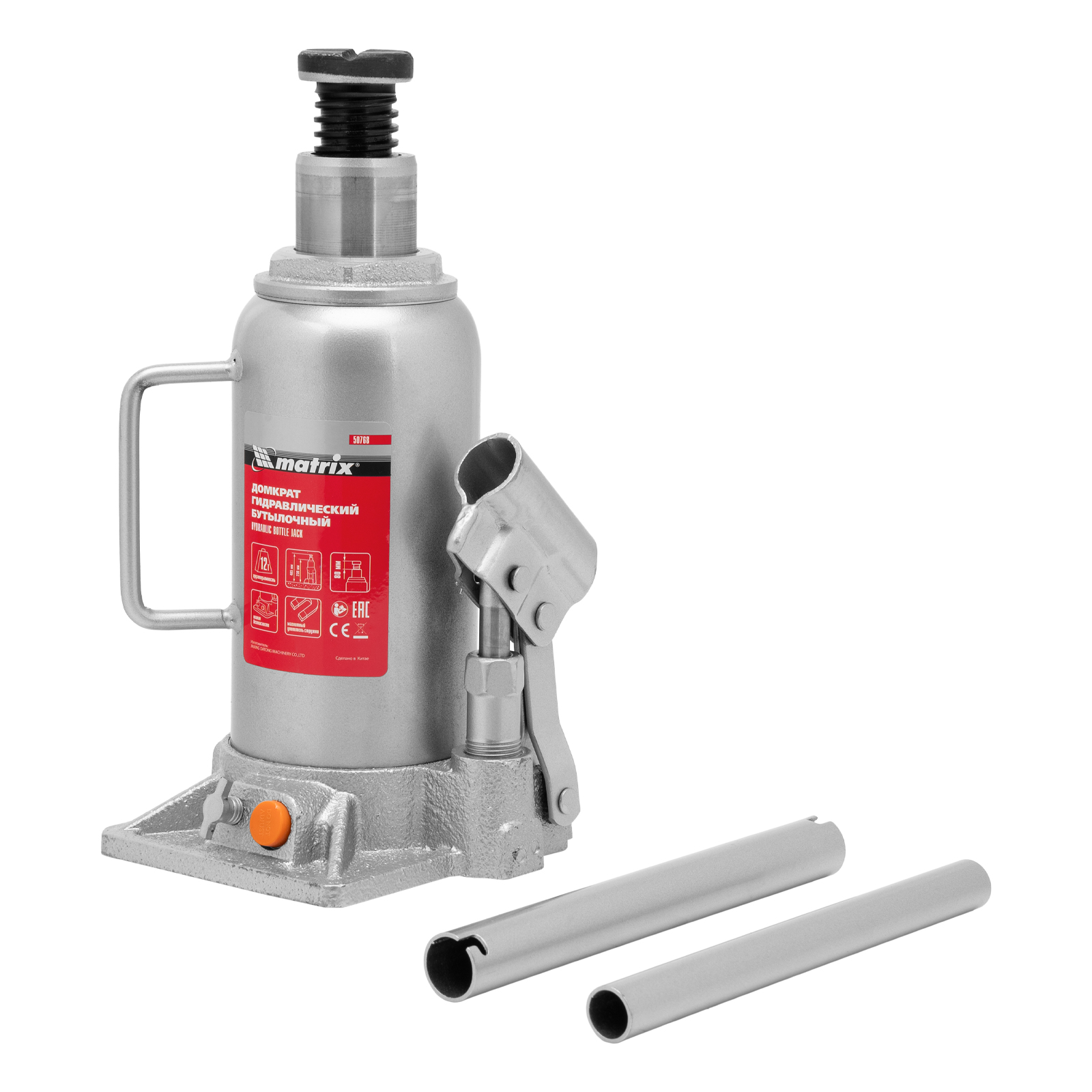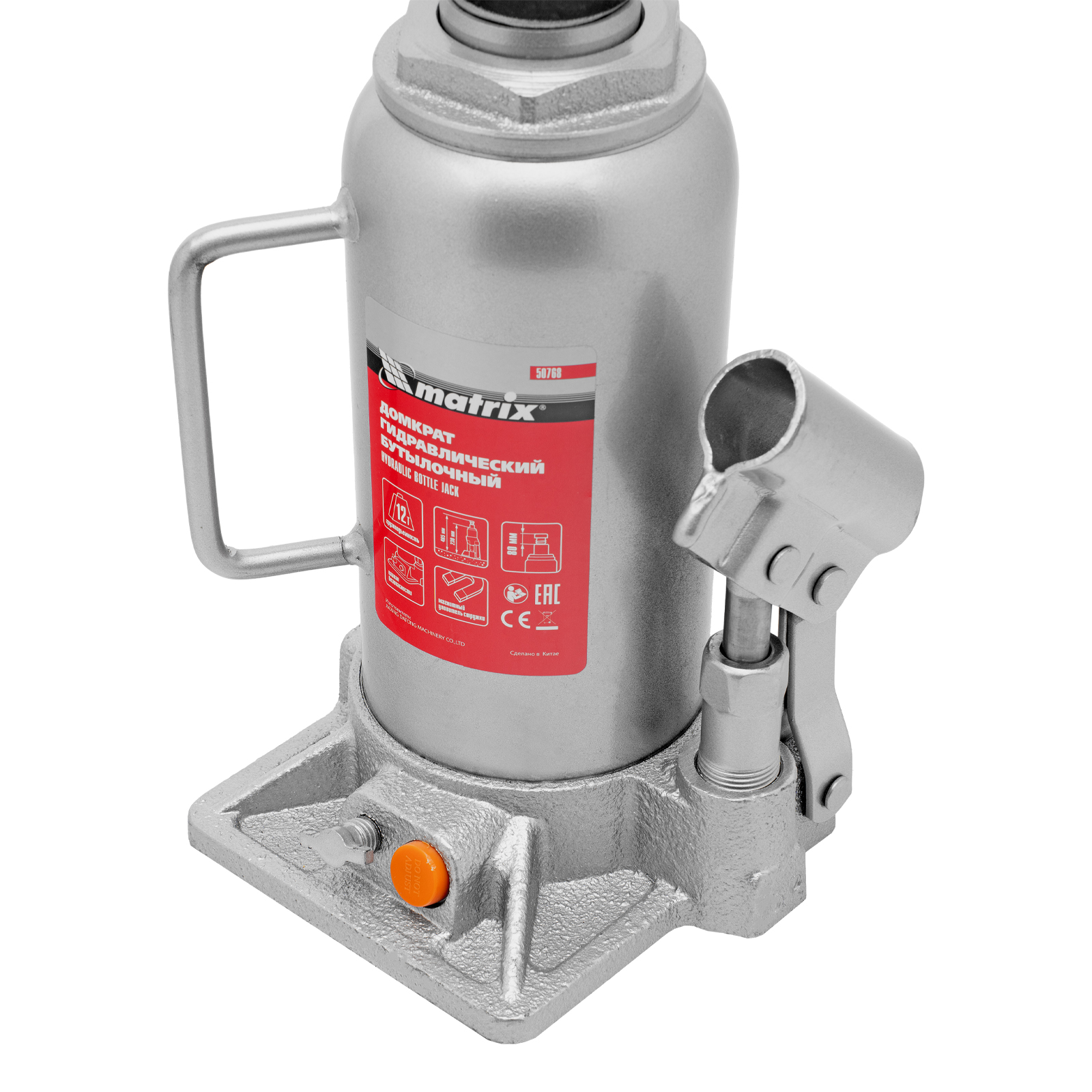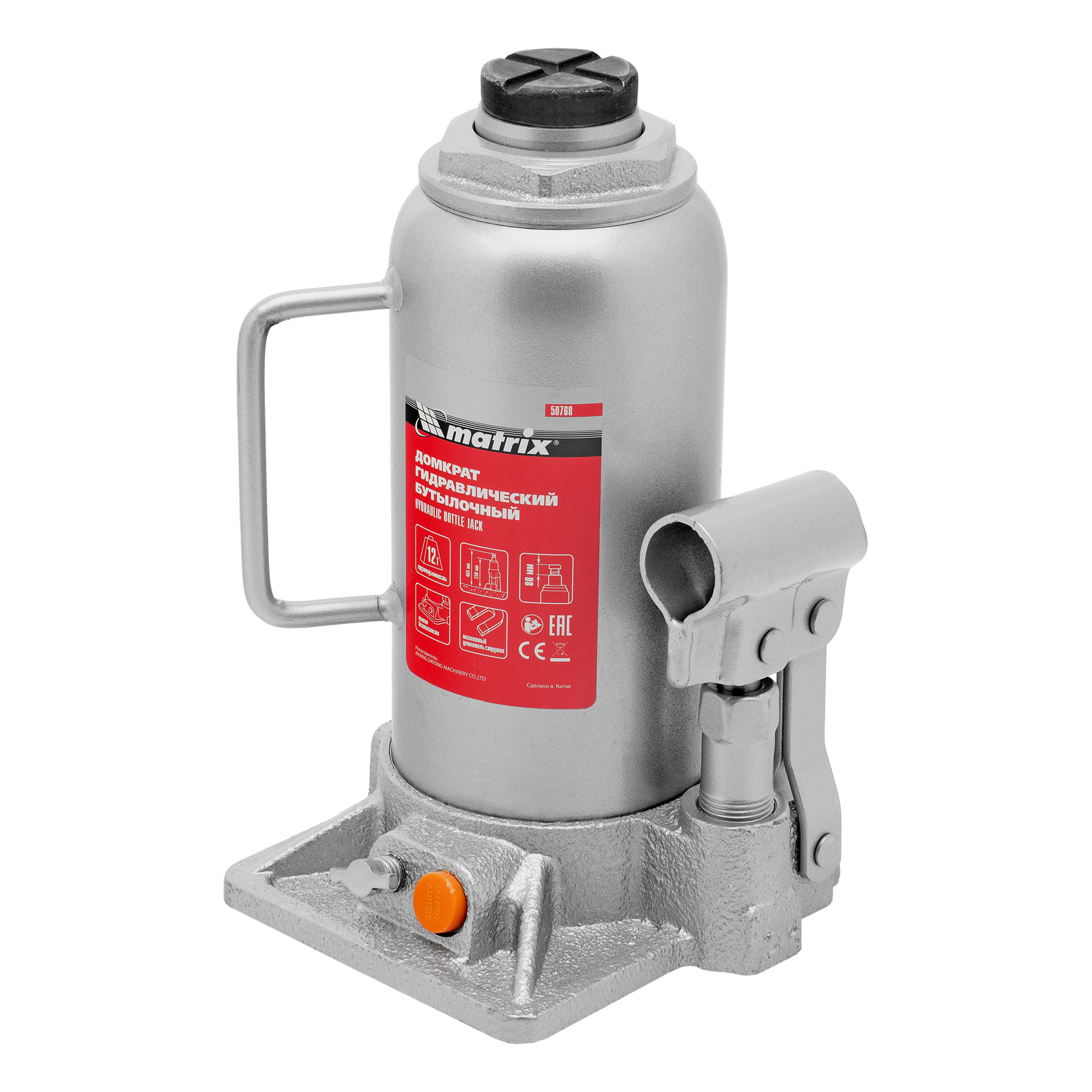Домкрат гидравлический бутылочный, 12 т, h подъема 230-465 мм Matrix